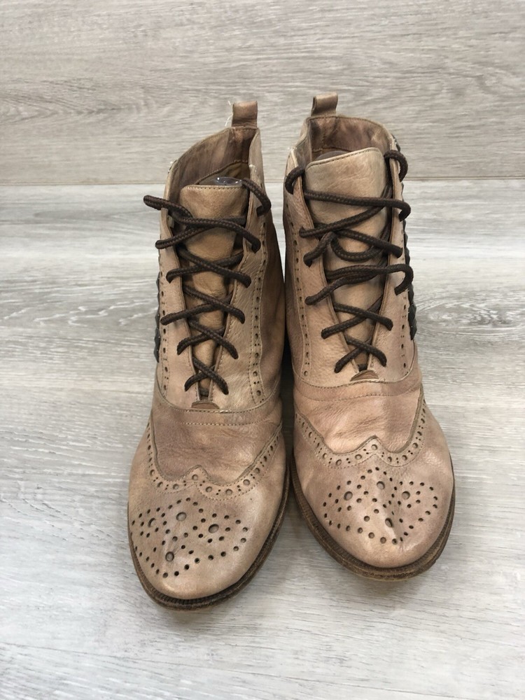 Sam Edelman Women’s Joss Taupe Leather Studded Wingtip Ankle Boots Sz 9.5M EUC Minor discoloration scuffing to outer material/ heels due to wear. No Box Unless Specified Returns Must Be Requested Using the Ebay System Guaranteed Fast Shipping: All Items Shipped Same Day or Next Business Day All Shoes Are Used and Not our Personal Shoes, So We Can't Specify exactly how many times the shoes have been worn. If they are used shoes there is possible cosmetic imperfections such as: color variations, scuffs, stains, dirt, nicks, heel wear, and general heel wear from wear over time. We do test and inspect closely for flaws in the shoes. However, it is possible to overlook or when the shoes get worn unforeseen Issues do occur. Any major flaws we try are very best to describe and point out in the description and photos. If there's any Issues or questions about an Item. I reply very quickly and try to resolve any issue with your purchase. I try my very best to deliver the best product service to all My buyers. Shoe trees or inserts are for display only.