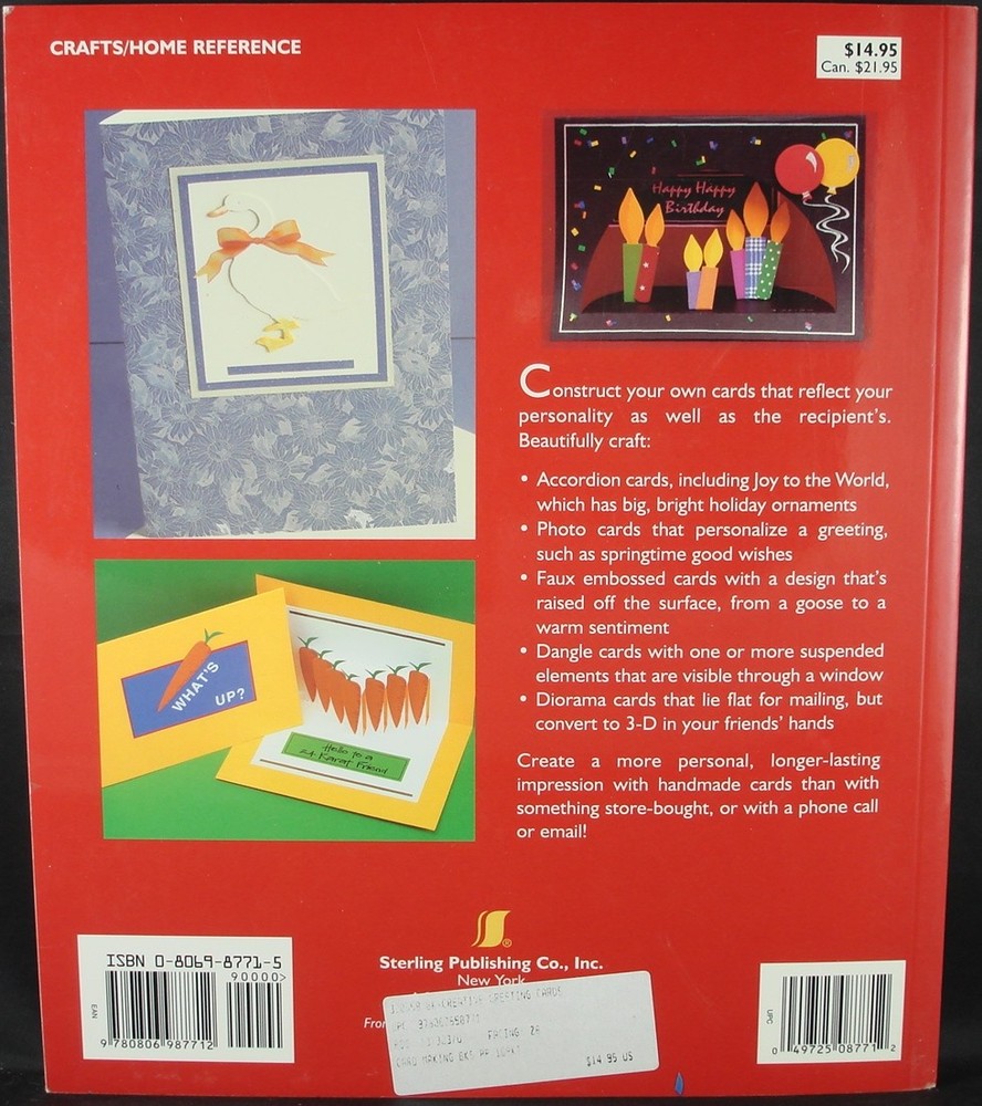 Synopsis "Window cards, pop-ups and other dimensional cards are sure to intrigue....After an introduction to technique and tools, you're off to projects for nearly any occasion. The focus is on dimensional elements and interactivity, whether you consider a diorama card...or a spiral mobile card...the author knows how to share her expertise with composition and color." RubberStampMadness. "Inspiration for every occasion." Rubber Stamper. Product Identifiers ISBN-10 0806987715 ISBN-13 9780806987712 eBay Product ID (ePID) 2119847 Key Details Author Sandi Genovese Number Of Pages 128 pages Format Paperback Publication Date 2001-12-31 Language English Publisher Sterling Publishing Co., Inc. Publication Year 2001 Additional Details Copyright Date 2002 Illustrated Yes Dimensions Weight 17.4 Oz Width 8.5 In. Length 10 In. I will gladly combine shipping for multiple items. Visit My eBay Store: Krafts n Klutter Thanks for Looking Shipping Details: Shipment will be by USPS Media Mail. Orders are generally shipped on the day after full payment has been received. Payment Details: Paypal Returns: Item can be returned within 30 days of receipt for a refund of sale price. All returns must include original items undamaged, in re-saleable condition with original packaging. Shipping and handling fees are not refundable. Buyer is responsible for shipping costs incurred for returning item. The free listing tool. List your items fast and easy and manage your active items.