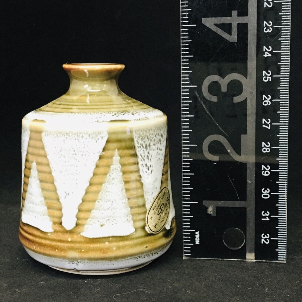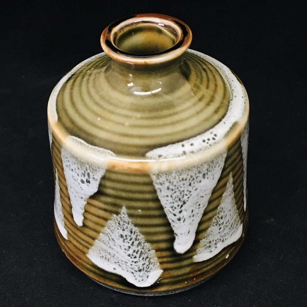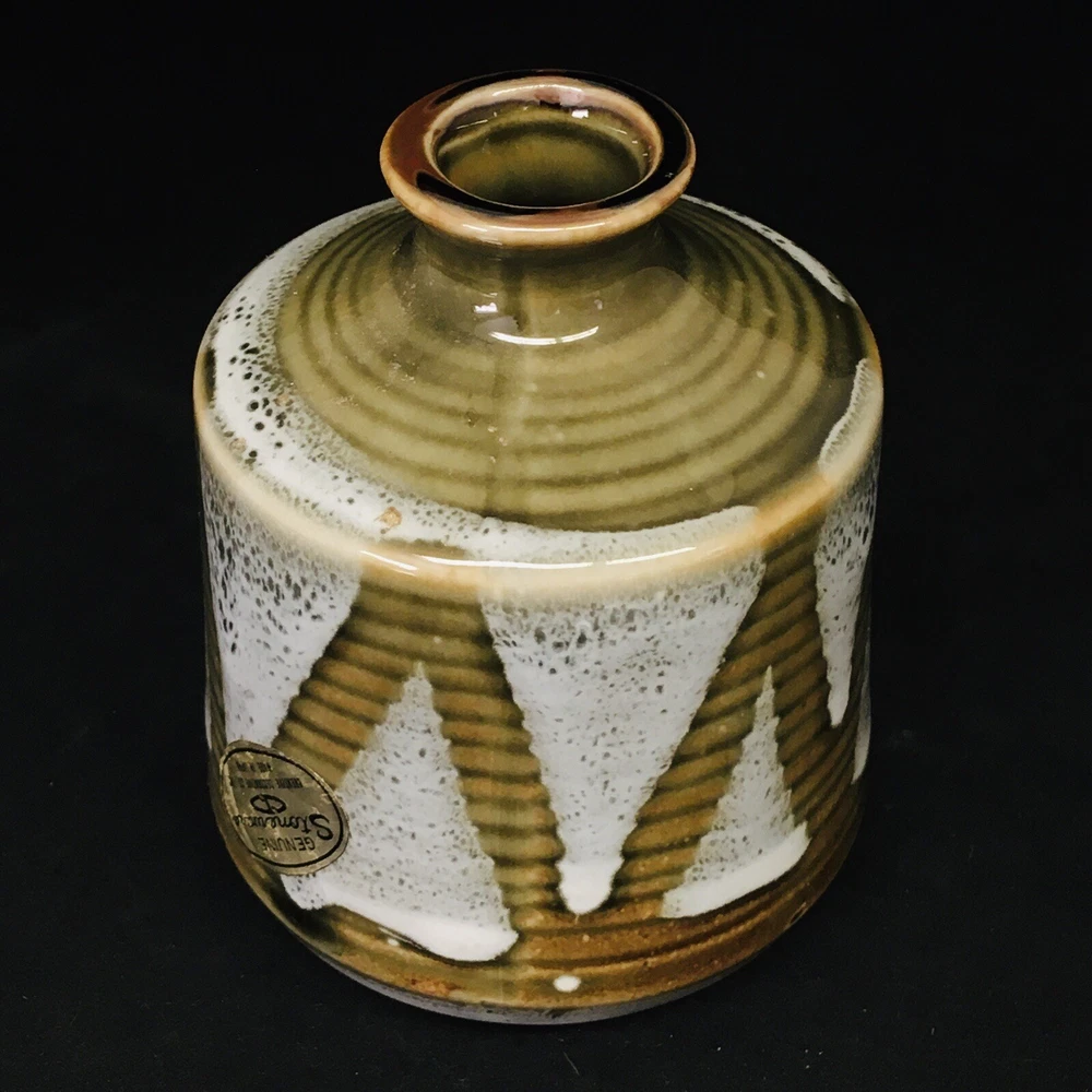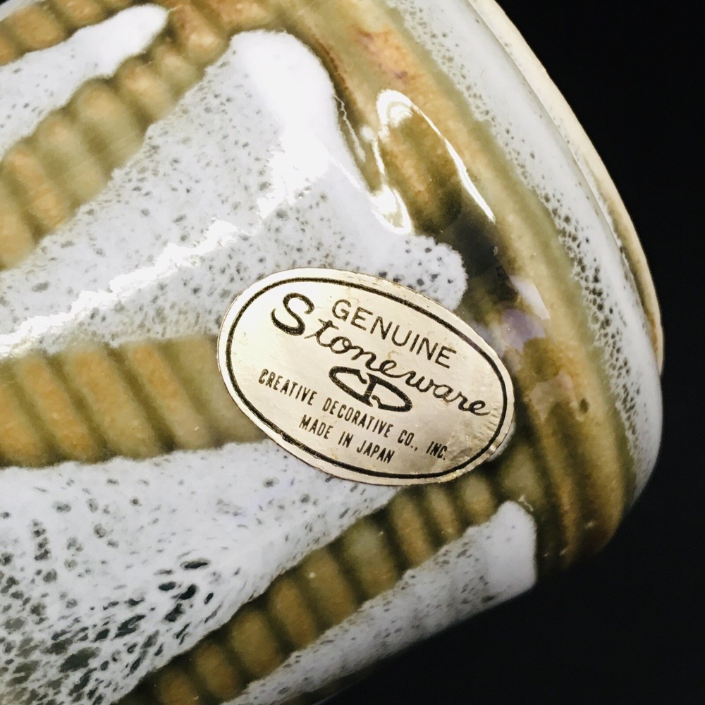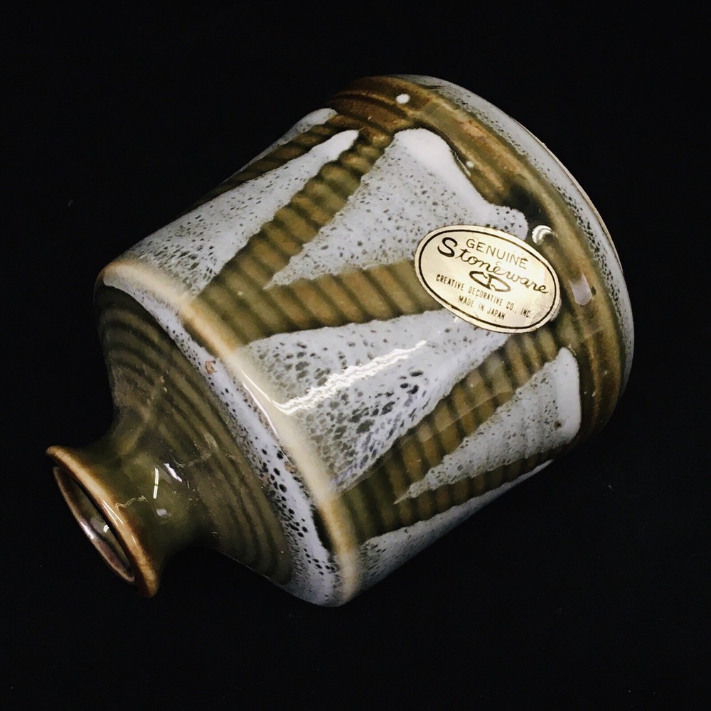 Sawtooth Weed Pot Genuine Stoneware Creative Decorative Co Inc Made in Japan Original Foil Sticker Brown Tone Rings Gray-white Arrowheads Sawtooth Chevron Designs Mid-Century Modern Measures Approximately: 3½“ Tall 2¾ “ Wide 2“ Diameter Base Please ask any questions you may have. Thanks for shopping with Crystal & Jules!