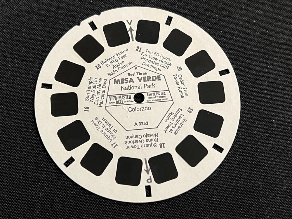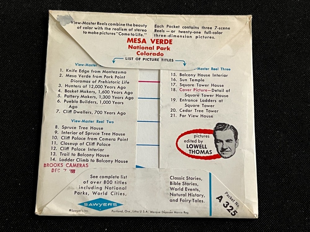 MESA VERDE NATIONAL PARK COLORADO Sawyer's View-Master Set #A325 Fine Condition Packet Bearing Original Price Tag Fine Condition Interior Sleeves 3 Fine Condition Reels Circa 1964 Issue _______________ Combine purchases and save on shipping! Use the Shopping Cart option to confirm your purchases and request adjusted shipping charges. The easiest way to do this is to place the items you want to purchase in your shopping cart. When you open the shopping cart, across from your name are the words in blue "Request Total." Click these words and the request total page is generated that shows the items that you are committing to buy and a box for a message to you the seller. You can now click the blue box that states “Commit to Buy” & submit the request. This works best on a computer rather than a cell phone. If something goes wrong and eBay charges you the full amount, don't worry, I will refund the excess when I pack your order. ______________________________________