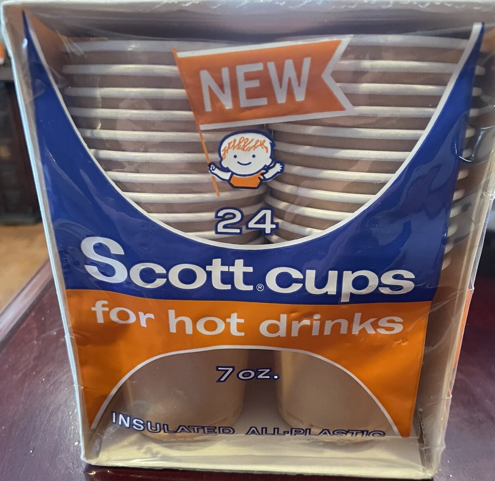 Vintage 1965 Scott Family 7 oz. Insulated All Plastic Hot Cups 24p NIP Orange Pumpkin. Color- new sealed awesome collectible vintage item -please see photos as further description ty...