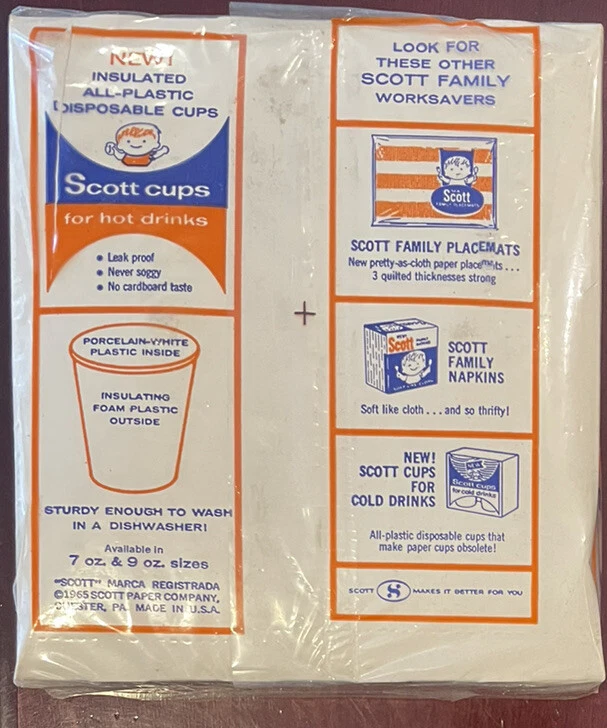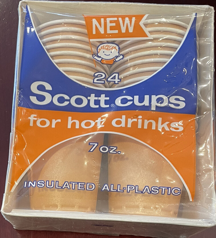 Vintage 1965 Scott Family 7 oz. Insulated All Plastic Hot Cups 24p NIP Orange Pumpkin. Color- new sealed awesome collectible vintage item -please see photos as further description ty