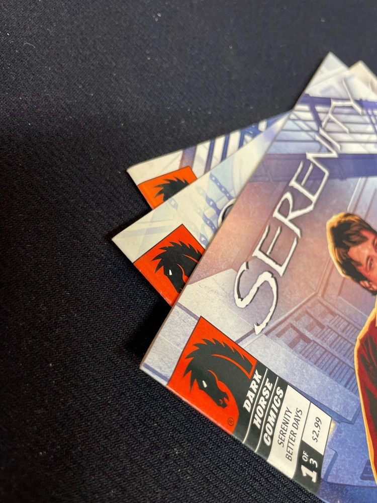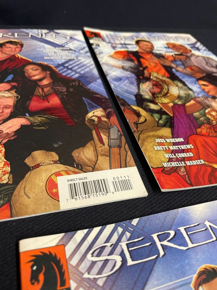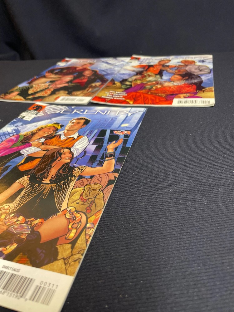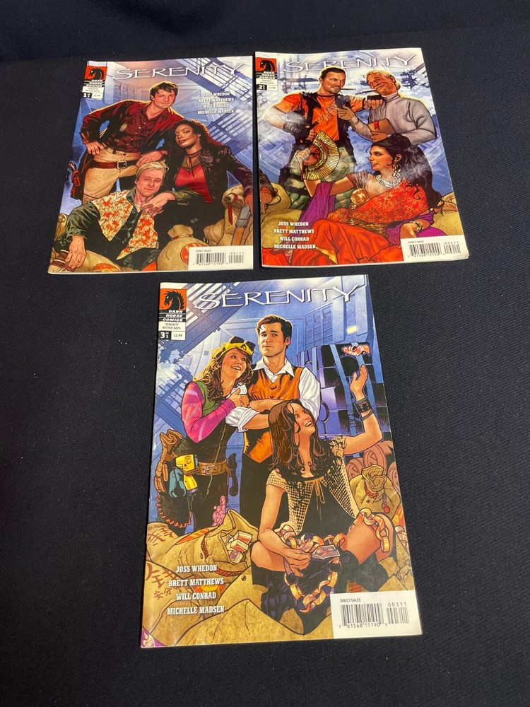 About This Auction: Serenity: Better Days #1-3 By Joss Whedon with art by Will Conrad and covers by Adam Hughes for Dark Horse Comics Complete series *** These comics are solid, gently read, collectible copies unless specified otherwise in the description below*** Our goal is to assemble the best run of a series in its most complete and collectible form. We carefully consider the quality of each comic in the lot when determining its auction value as a whole. We do not place a grade on individual comics; instead we provide clear pictures for you to gauge the overall quality. **Please contact us for any questions or requests for additional photos** Please note: Our comics are not sold individually bagged and boarded. (If the images provided show comic books with bags/boards, please note the bags/boards have been removed! We do not sell comics individually bagged and boarded) Shipping: We offer Priority shipping services and pack items securely. Items are shipped within 1 days after payment has been received barring weekends and holidays. Items over $200 require a signature upon arrival. To ensure your books arrive safely, we bag our comics in bundles of 4-7 books per golden bag and place comic boards between the bundles to protect the book on all side. We have found this method to prevent movement during shipping. Contact Us: Please contact us directly to discuss any questions, concerns or to request additional detailed photos. We pride ourselves on our evaluation process and our prompt customer service. We're always happy to work with you to ensure total customer satisfaction before your transaction is complete. _____________________________________________ ** Comicazi Inc.** Comicazi is located in located in Somerville, Massachusetts 2017 Eisner Award winning retail shop specializing in comic books, graphic novels, toys, games, and more!! ** Ebay user ID: comicazionline ** Inventory: Marvel 123
