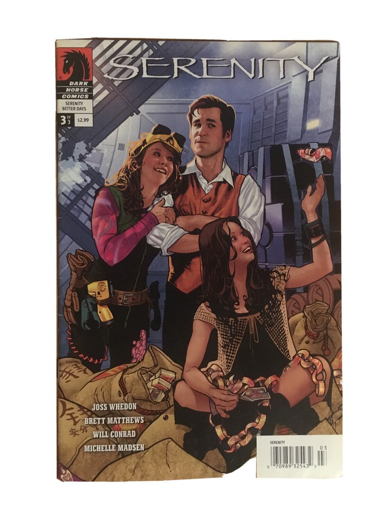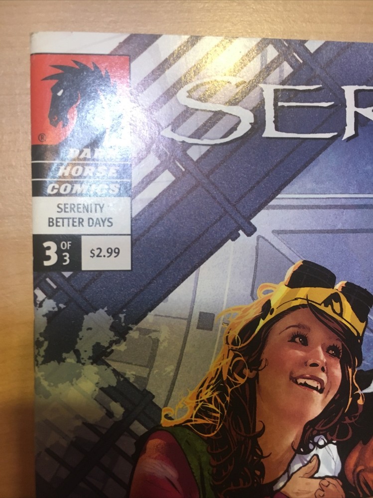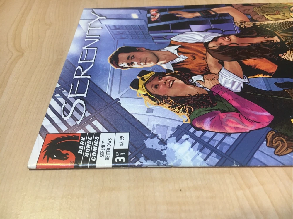 Serenity: Better Days #3 May 2008 Dark Horse , Adam Hughes Cover, Joss Whedon. Condition: See pictures for condition Defects: some spine ticks, light dents, light corner ding on top left, see pictures for specifics Shipping: Shipped in comic bag and board and secured in Gemini mailer. US Lower 48 only.