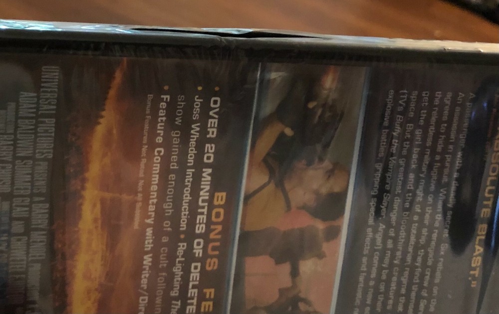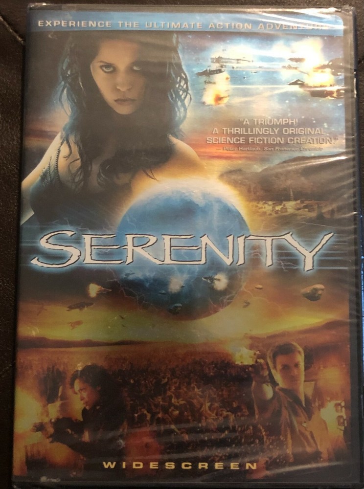 Serenity DVD 2005 Nathan Fillion Joss Whedon Widescreen New Condition see pics As shown in picture#4 there is a rip in the seal but it is intact and new still. Thanks...