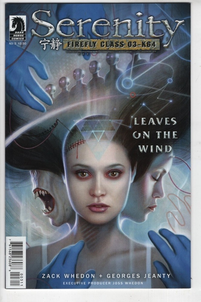 Serenity Leaves On The Wind #3 cover A comic book (W) Zack Whedon (A) Georges Jeanty, Karl Story (CA) Daniel Dos Santos Serenity is found! The crew, including Jayne and a certain bounty hunter, get themselves ready to restock and retrieve when River wakes from her self-induced sleep and gives Mal a mandate . . . which will eventually-hopefully-maybe-lead to Zoe's rescue! • Buffy's Season 8 and 9 artist conquers the galaxy! • Zack Whedon returns to Serenity! • Executive producer Joss Whedon! Cover price $3.50. An essential for any Firefly television series, Serenity movie fan, or comic book collector. This comic book has been preserved in NEAR MINT collector's condition, and comes in a plastic comic sleeve with an acid-free backing board. Please check out our other COMIC BOOK AUCTIONS. We will combine shipping on multiple winning items. Shipping is via USPS MAIL and includes insurance within the United States.