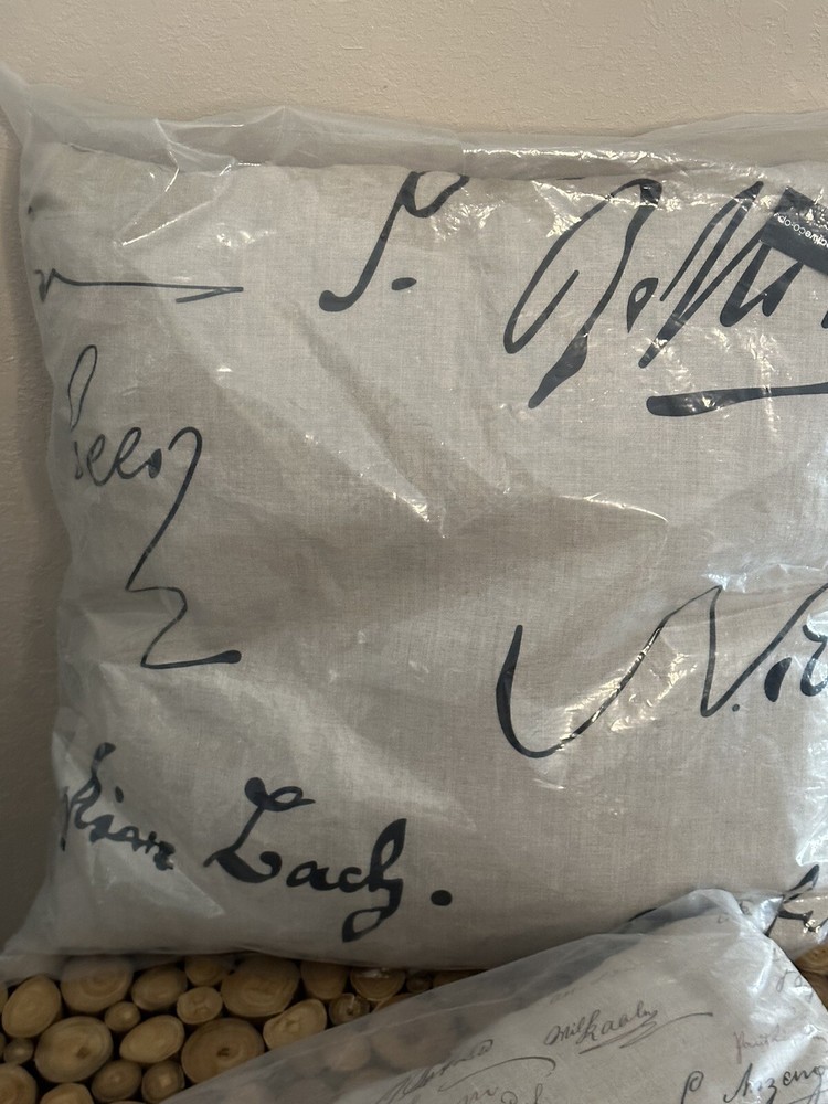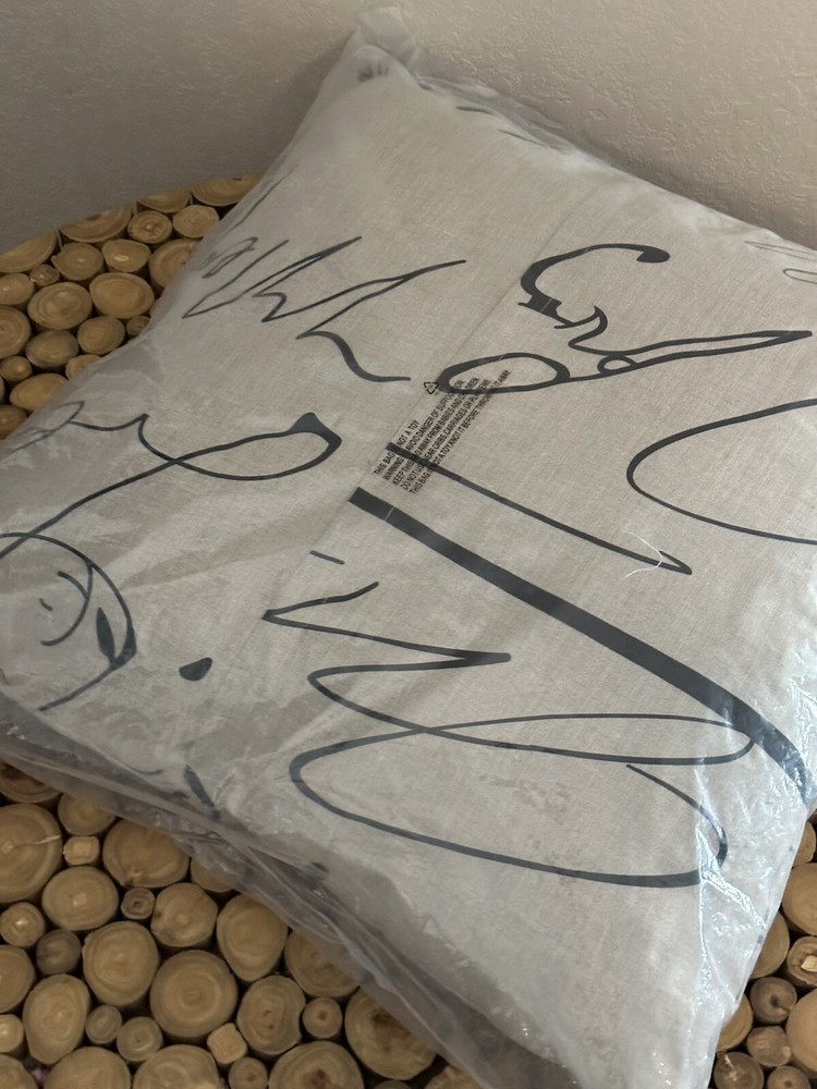 Introduce a touch of contemporary style to your home with this set of two brand new Creative Co-Op throw pillows. Made with high-quality materials, these pillows feature a beautiful calligraphy theme that will enhance the décor of any room in your house. The larger pillow measures 23.5 inches while the smaller one measures 17.5 inches, making them perfect for both decoration and comfort. With their modern design and durable construction, these pillows are sure to add a unique and cozy touch to your home. Whether you're looking to update your living room, bedroom, or any other space, this set of two Creative Co-Op throw pillows is a great choice.