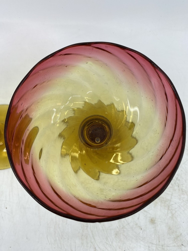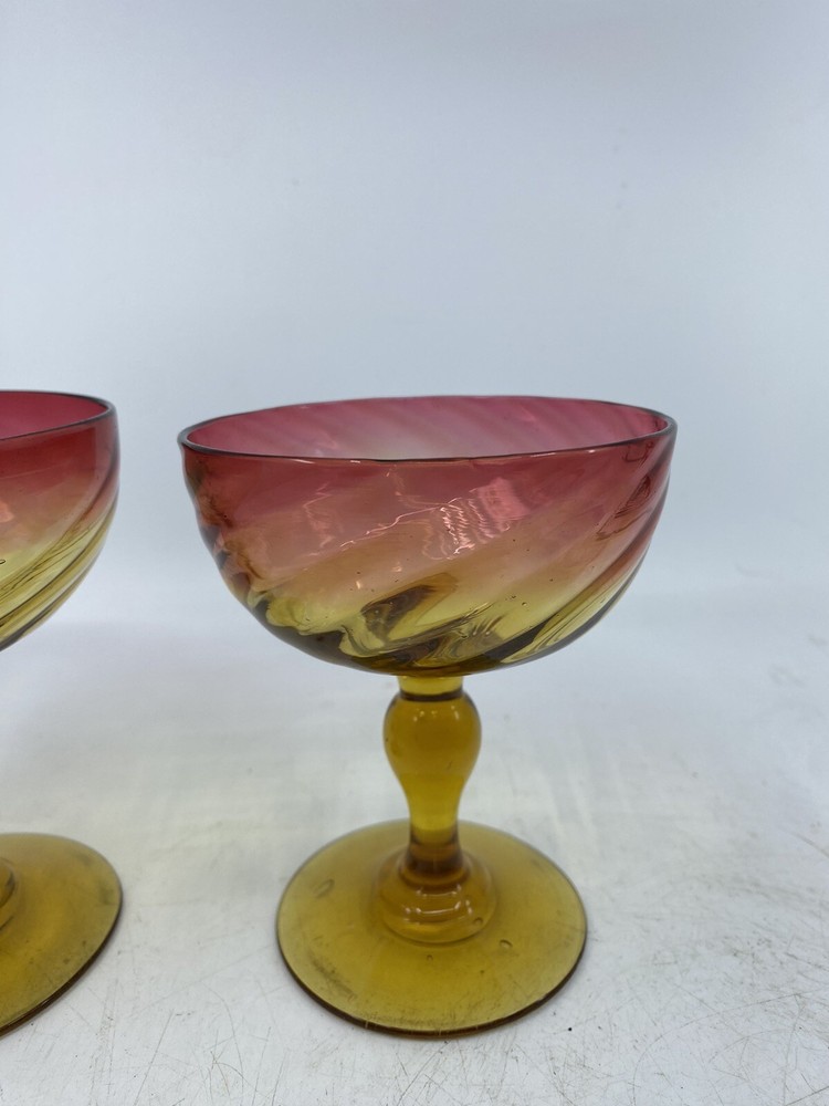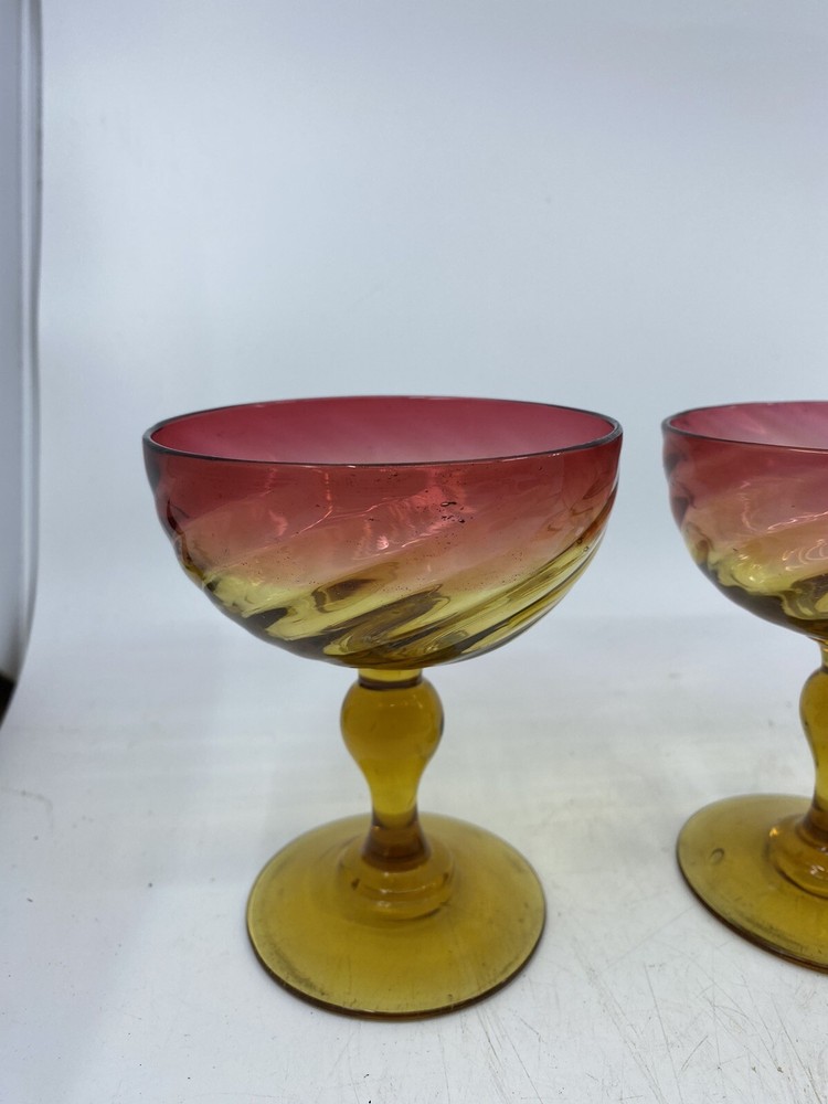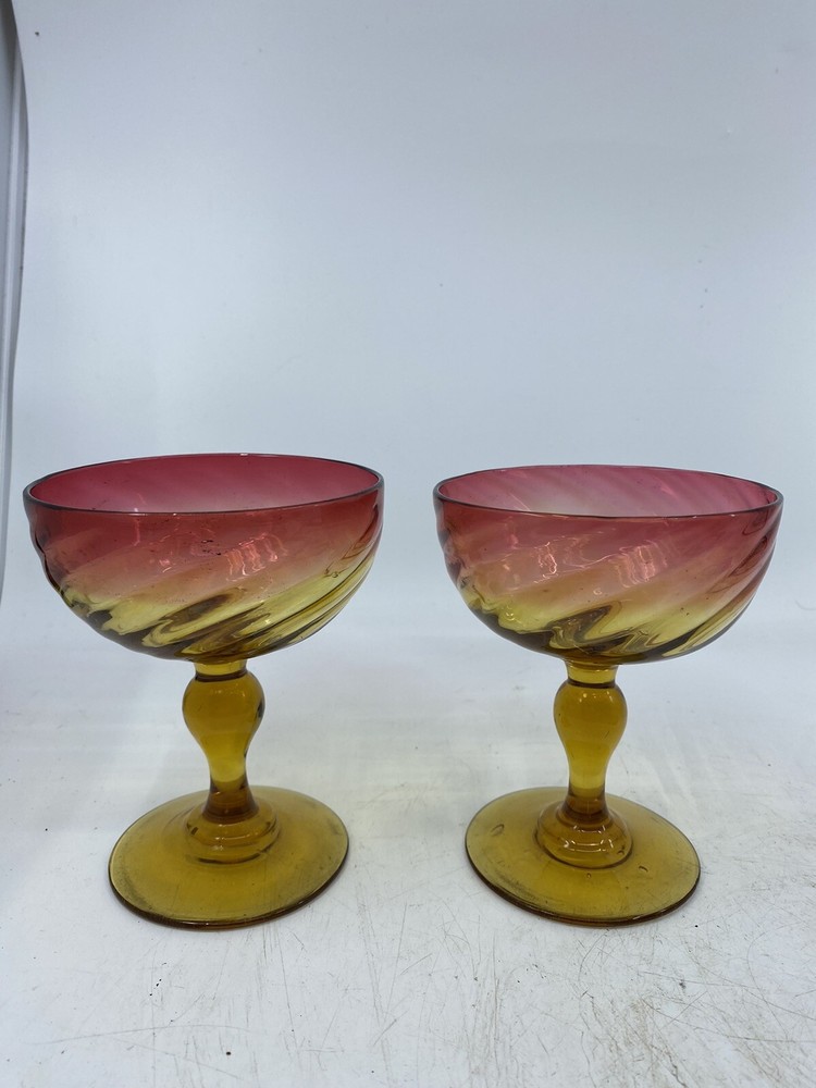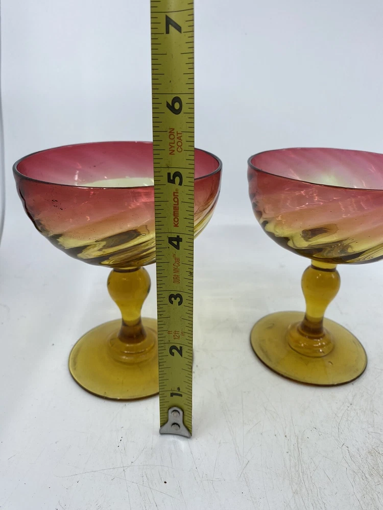 Set comes with both glasses. These are beautiful glasses! No cracks, there are some bubbles in the glass from the manufacturing process. See photos for details, dimensions and conditions. Items sold a...