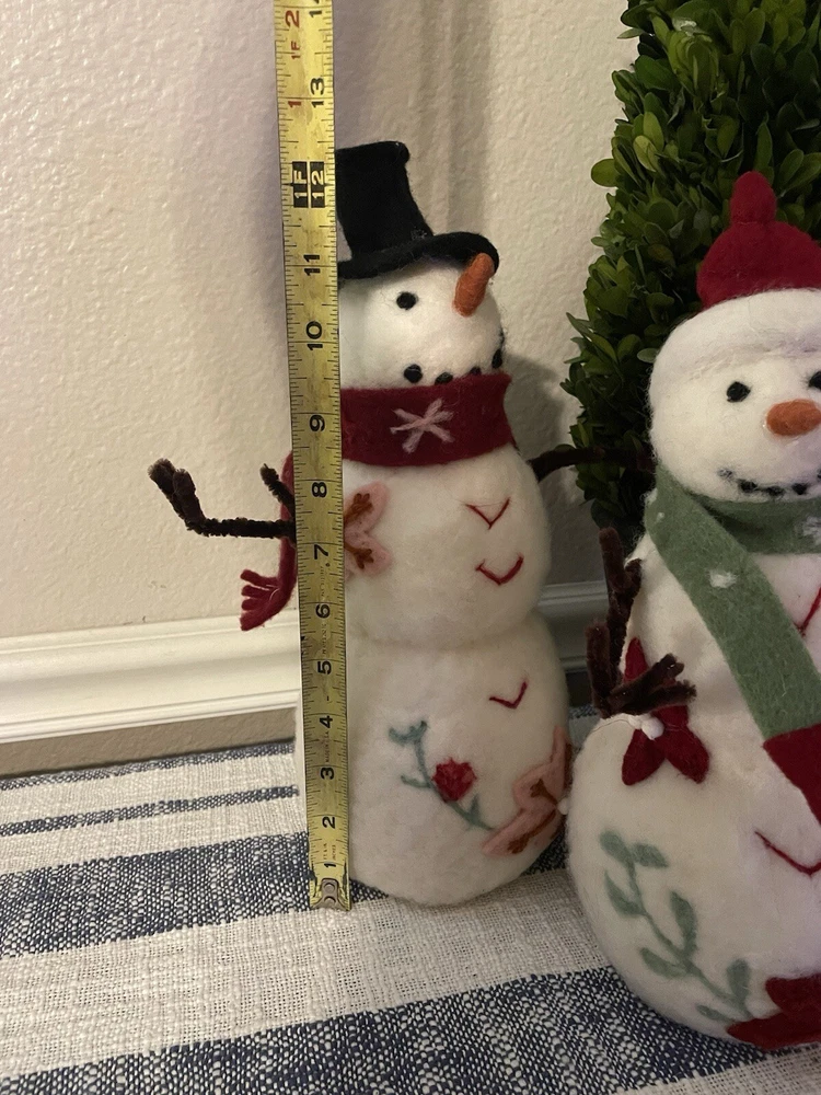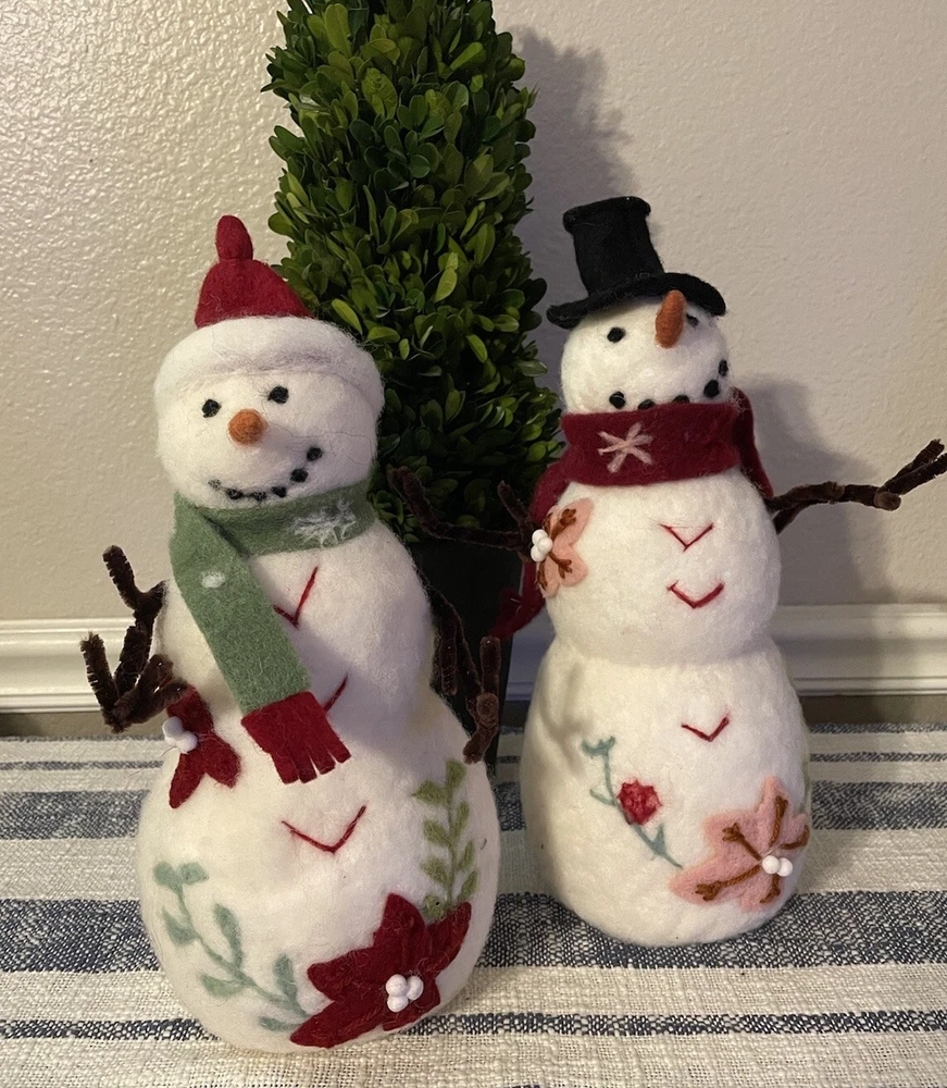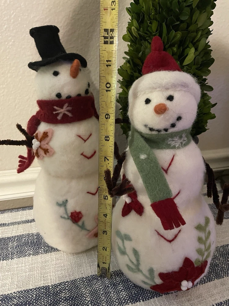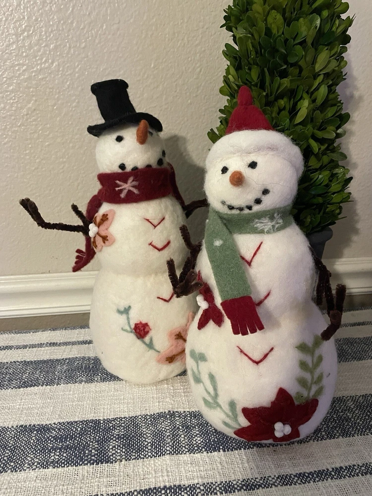 Add a touch of holiday cheer to your home with this Creative Co-Op snowman sculpture . The vibrant green and red colors of the wool felt and pom pom details make this piece a perfect addition to your Christmas decor. Measuring 13.25x5.25x5.25", this figurine is sure to catch your eye and bring a smile to your face. The poinsettia floral pattern and snowman character family make this piece a unique and original addition to your collection. Made with high-quality materials including wool felt, pipe cleaners, and pom poms, this figurine is a must-have for any seasonal or holiday-themed display.