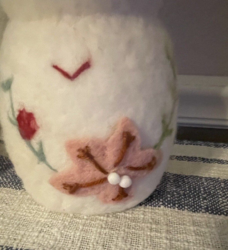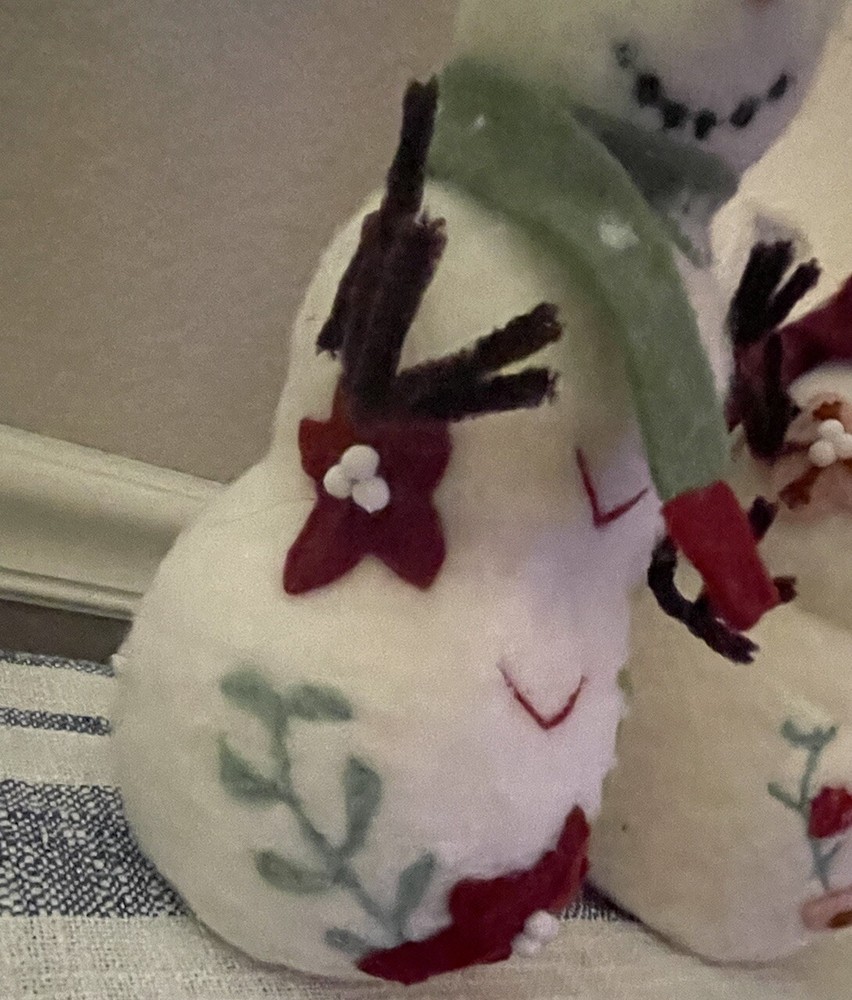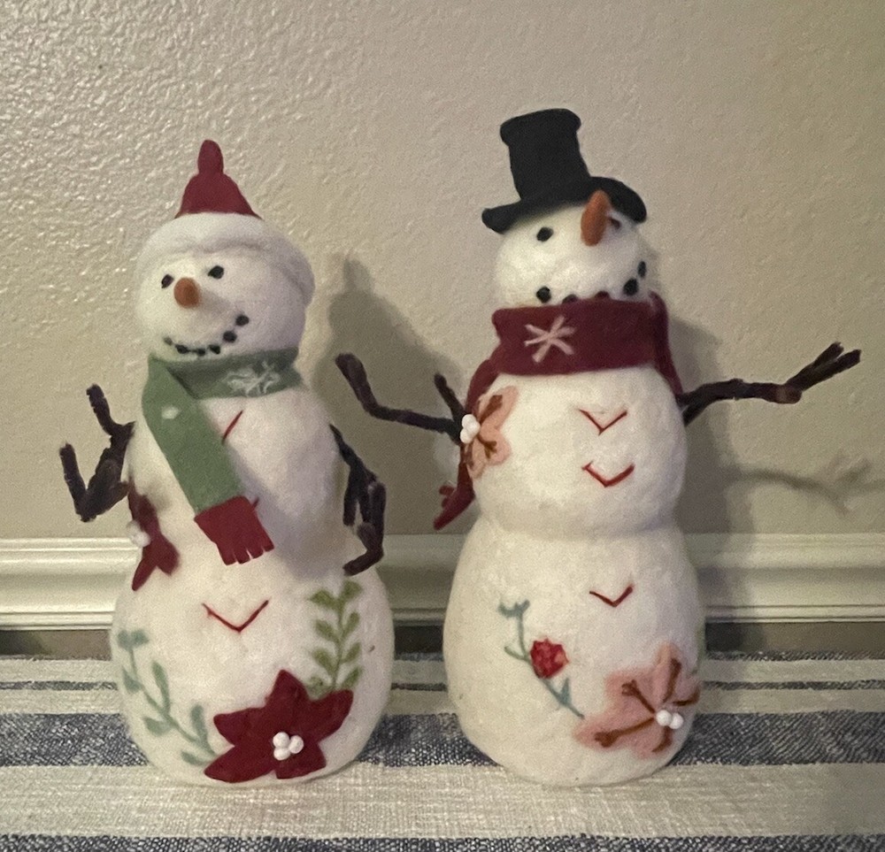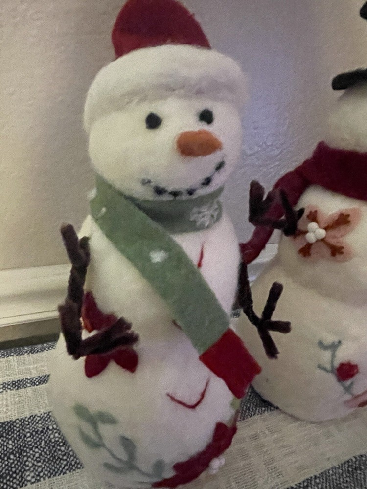Add a touch of holiday cheer to your home with this Creative Co-Op snowman sculpture . The vibrant green and red colors of the wool felt and pom pom details make this piece a perfect addition to your Christmas decor. Measuring 13.25x5.25x5.25", this figurine is sure to catch your eye and bring a smile to your face. The poinsettia floral pattern and snowman character family make this piece a unique and original addition to your collection. Made with high-quality materials including wool felt, pipe cleaners, and pom poms, this figurine is a must-have for any seasonal or holiday-themed display.