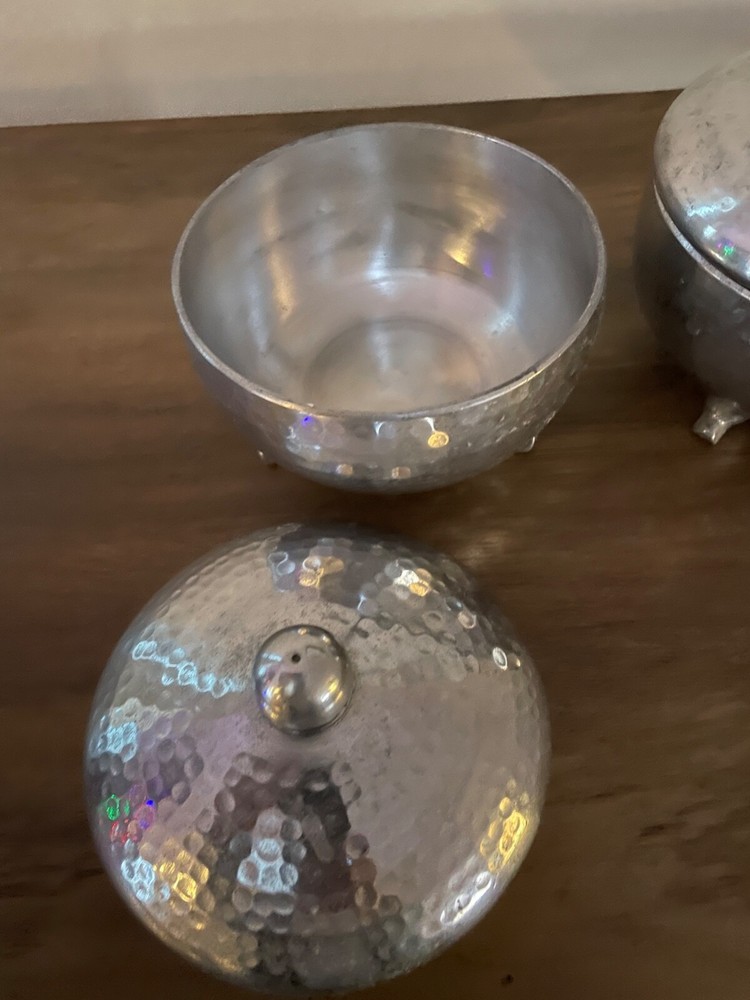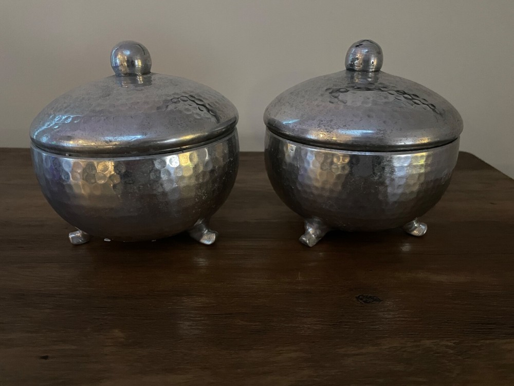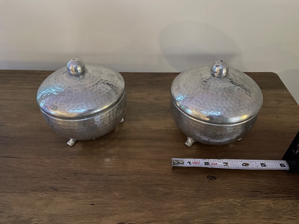 Set of 2 Creative Co-op Hammered Aluminum Covered Candy Trinket Dishes...