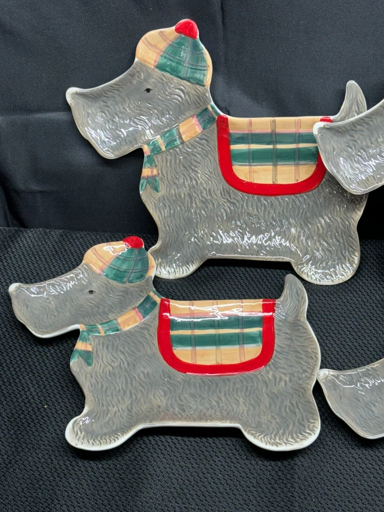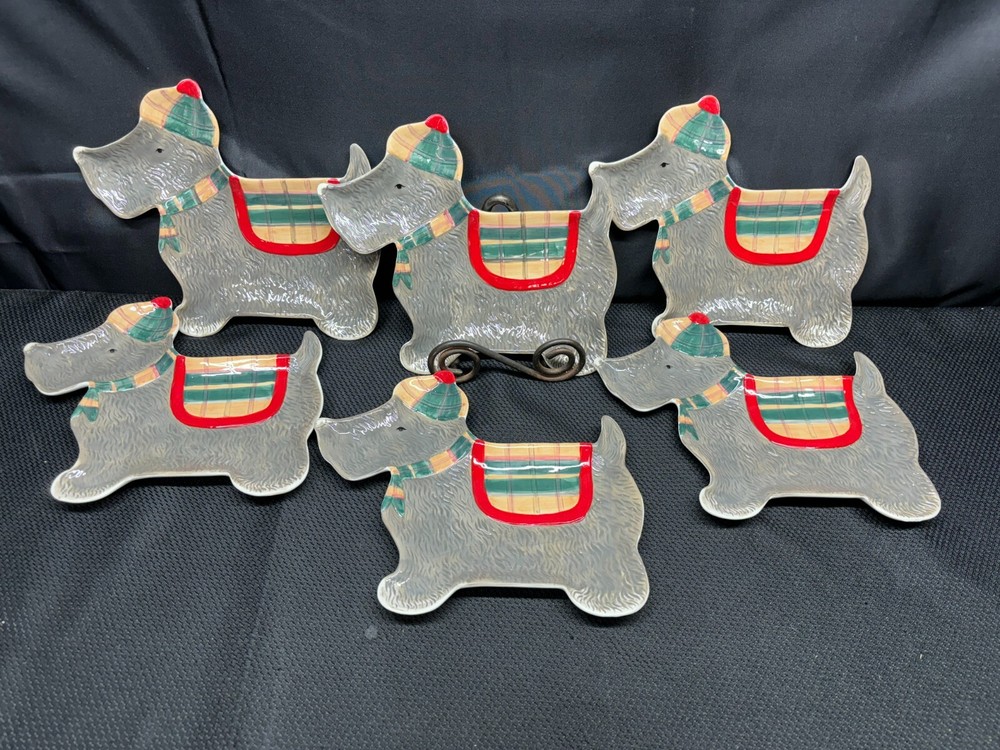 Set of 6 ~ Creative Co-Op "SCOTTIE DOG" Plates ~ Tis The Season Collection ~ 9 1/2" x 8" L & M Landing Store Terms We make every attempt to show our listings as they truly are. If the pictures or descriptions are not clear, please contact me. Positive Feedback is very important to us. We strive to always have repeat customers that have a great experience shopping at our store. If for any reason you are not completely satisfied with your purchase, please contact me and we can resolve the issue together. Buy Now – Payment is due immediately · PLEASE BE SURE YOUR SHIPPING ADDRESS IS UPDATED · SELLERS CAN NO LONGER CHANGE THE SHIPPING ADDRESS Auctions – Payment due within 3 Days We do offer combined shipping for multiple purchases. All overpaid shipping costs will be refunded at the time of shipping. We are a member of the Global Shipping Program in order to accommodate customers in other countries. SHIPPING TIME: Your item will be shipped the next business day after cleared payment has been received. You will receive shipping notification through eBay shipping or through PayPal shipping when your item is mailed. PLEASE be sure your shipping address is correct. Most of the items listed come from estate sales, auctions, garage sales, consignments and/or private sales. As such, I normally don't know the history of the item nor how it was stored.