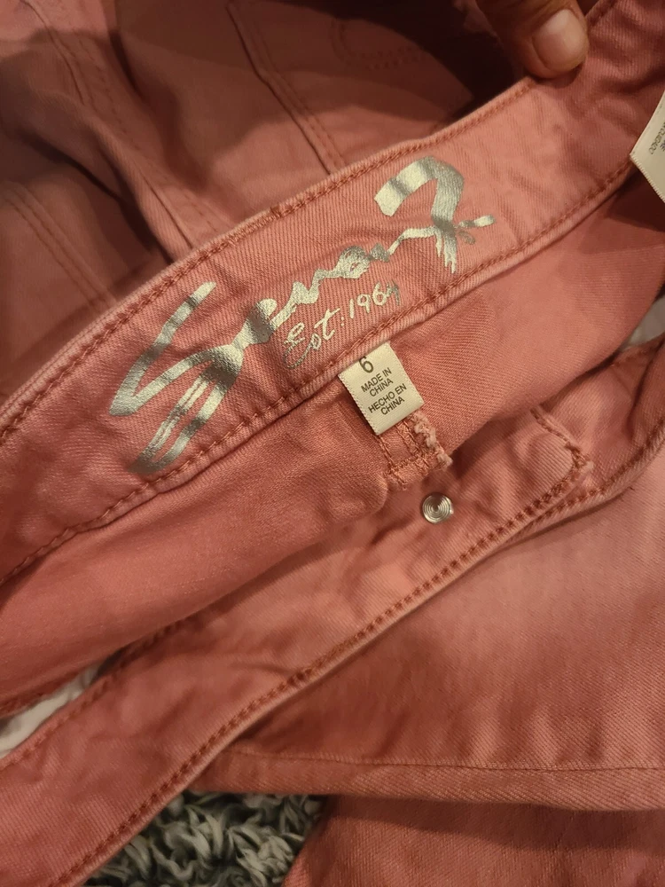 Gently used. I am not 100% sure on color description. Last picture was taken outside and it shows the most accurate color. The fabric stretches. There are photos with measurements for extra size comparison. If you have any questions feel free to ask. Thanks for looking.