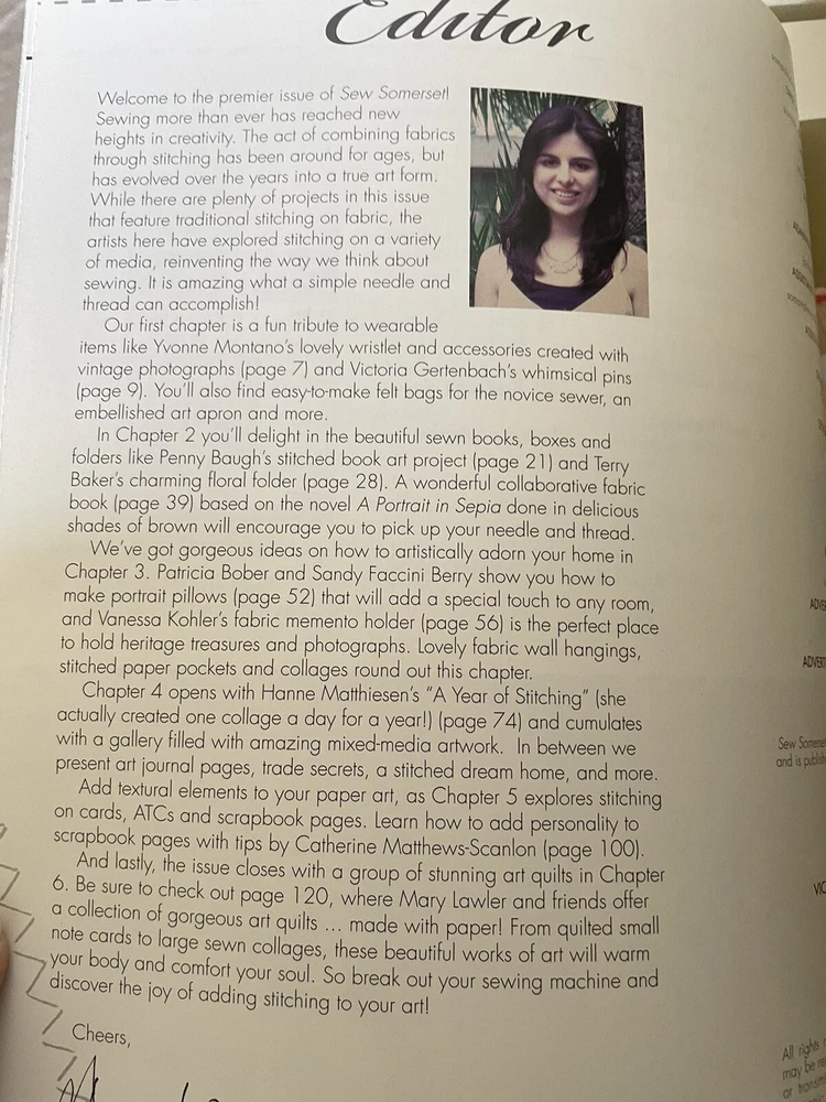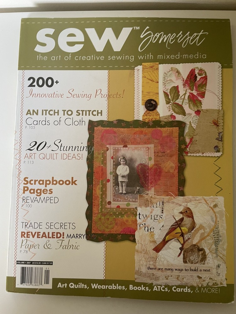 Sew Somerset: The Art of Creative Sewing with Mixed-Media, Vol. 1 Issue 1, Premier Issue Year: 2007 Magazine Type: Printed in the USA Pages: 136 Description: This is the premier issue of Sew Somerset , a unique magazine that delves into the art of creative sewing with mixed-media. Published by Stampington & Company, this magazine explores innovative ways to incorporate stitches into various art projects, proving that sewing isn't just for fabric anymore. Inside, you'll find a variety of creative projects, tutorials, and inspiration perfect for artists who enjoy blending different mediums. Condition: Very good Purchased at an estate sale in Michigan from a woman who had an extensive sewing library. This magazine is in very good condition with no missing pages, clean and unmarked. The corners have some tiny curls. --------- Thank you for choosing our products. We strive to provide you with the best quality and service. Here are some important details about your order: - We ship your items within 24 hours of receiving your payment confirmation. - We have a variety of products for sale on our E-bay store. You can browse them by clicking on the link below. ; My Items - We kindly request that you complete your payment within 3 days of placing your order. This will help us process your order faster and avoid any delays. - We make sure to include clear and accurate pictures of our products on our listings. Please review them carefully before making your purchase, as they are part of the product description. - We appreciate your feedback and support. Please add us to your favorite seller list and check our store regularly for new items and promotions. - If you have any questions or concerns about your order, please do not hesitate to contact us. We are here to help and resolve any issues you may have. - Your satisfaction is our priority. All our products are stored in a clean, smoke-free home and handled with care. We hope you enjoy your shopping experience with us and come back soon!