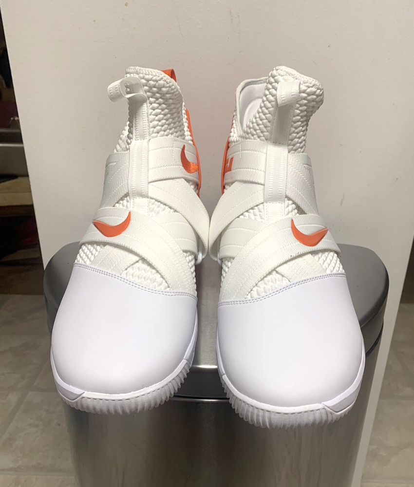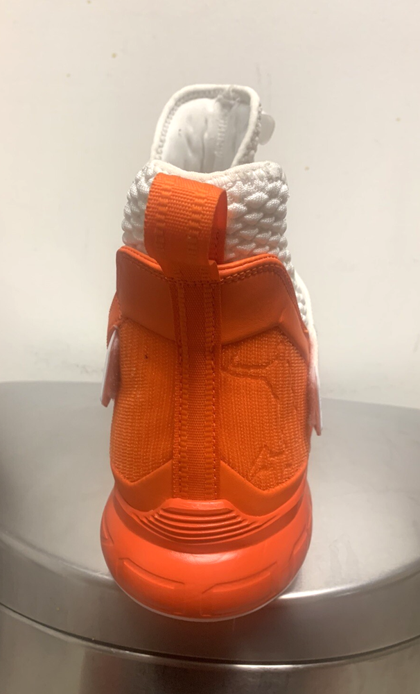 Elevate your sneaker game with these Nike LeBron Soldier shoes. The mid-top style and standard shoe width make them comfortable for any occasion. The orange and white colorway, inspired by the iconic Lebron James, is sure to turn heads. These shoes are perfect for any man looking to add a touch of athleticism to their wardrobe. Soldier character and Nike branding make these shoes a must-have for any sneaker enthusiast.