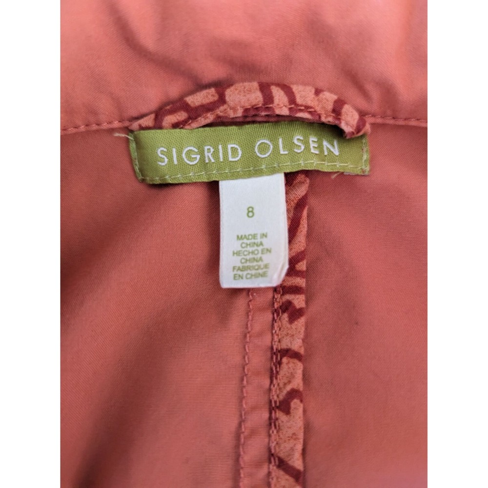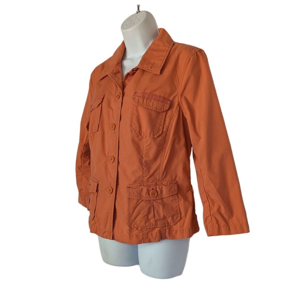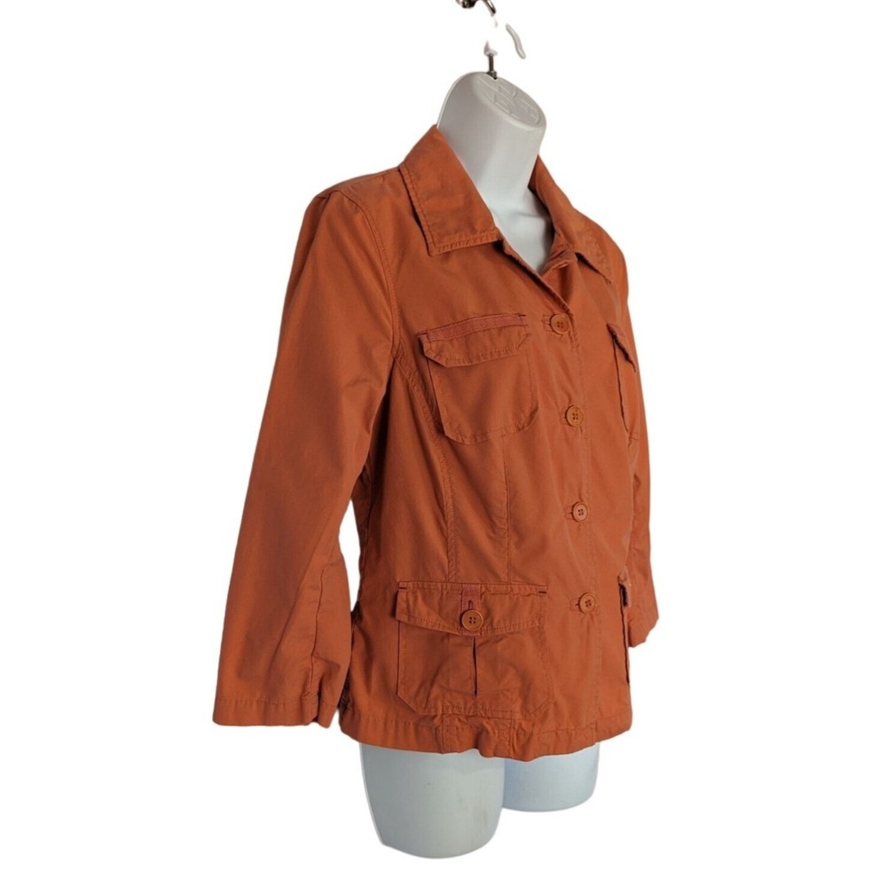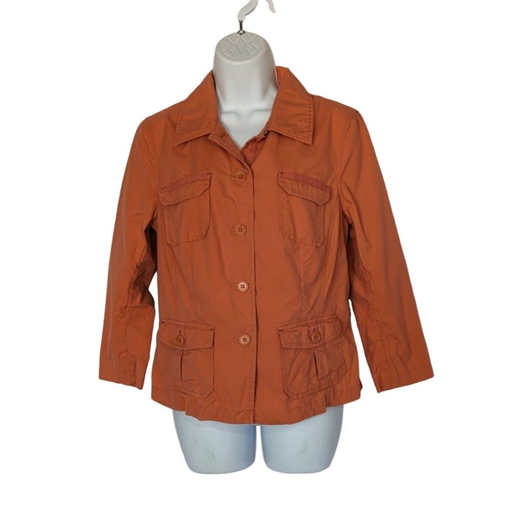 Women's lightweight button up long sleeve jacket Features: • Brand: Sigrid Olsen • Material: 100% Cotton • Color: Orange • Spring, Summer, Fall • Machine washable Size: Womens 8 Measurements approx. Armpit to armpit- 18 in Shoulder to hem- 22 in Sleeve length- 19.5 in Sleeve inseam 13 in Condition: Great Pre-Owned condition. No stains, Rips. Please see pictures. Item has been cleaned according to clothing manufactures instructions Ships same/next business day 3817A5