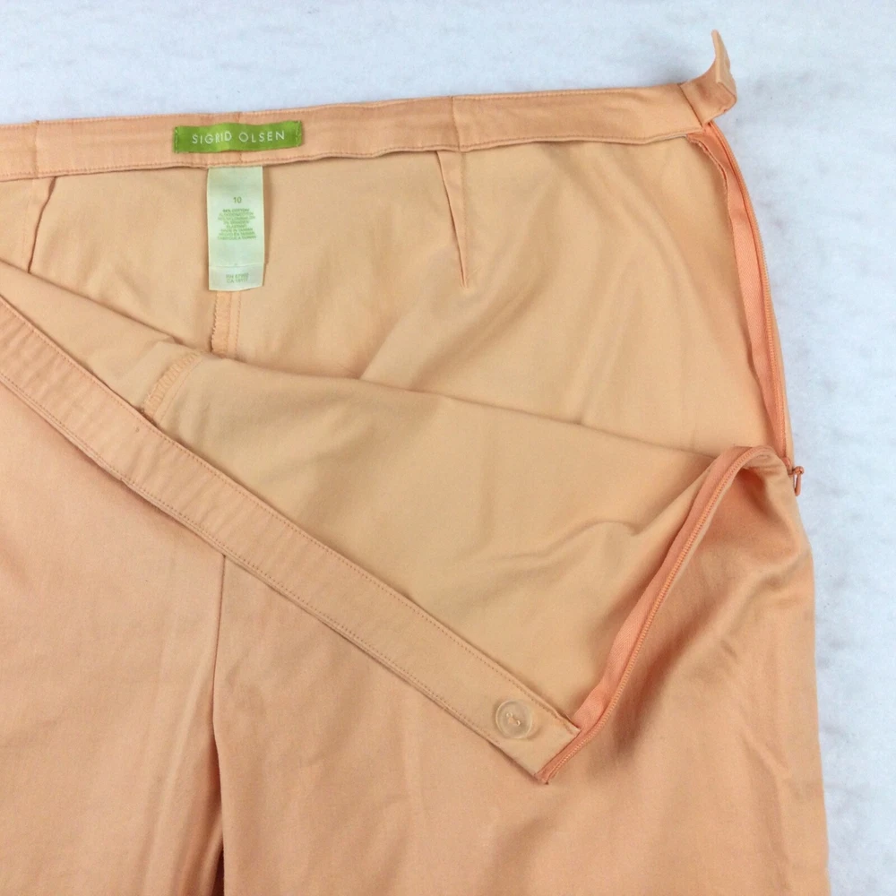 Sigrid Olsen - Womens size 10 Pants Orange Peach Mid Rise, Flat Front, Straight Leg Size Zip Closure Rise 10.5" Inseam 27" Ankle 8.5" VG to Excellent...