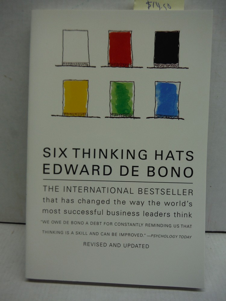 Imperial Books and Collectibles presents ... Six Thinking Hats ISBN: 0316178314 Author: de Bono, Edward Publisher: Back Bay Books Release Date: 1999-08-18 Seller Category: Social Studies:Business/ Economics:Management Qty Available: 1 Condition: New Binding: Paperback Sku: 032277 Notes: New. Features stiff glossy wraps. Binding tight and square; contents clean and unmarked. 173pp Don't forget to check out other great deals in our eBay Store!! Packaging: All items carefully packed to avoid damage from moisture and rough handling. All items shipped in a bag or bubble wrap, and protected by cardboard. Newer books are usually mailed in a cardboard book mailer, older items in a box, and small items in a bubble mailer protected inside by cardboard.