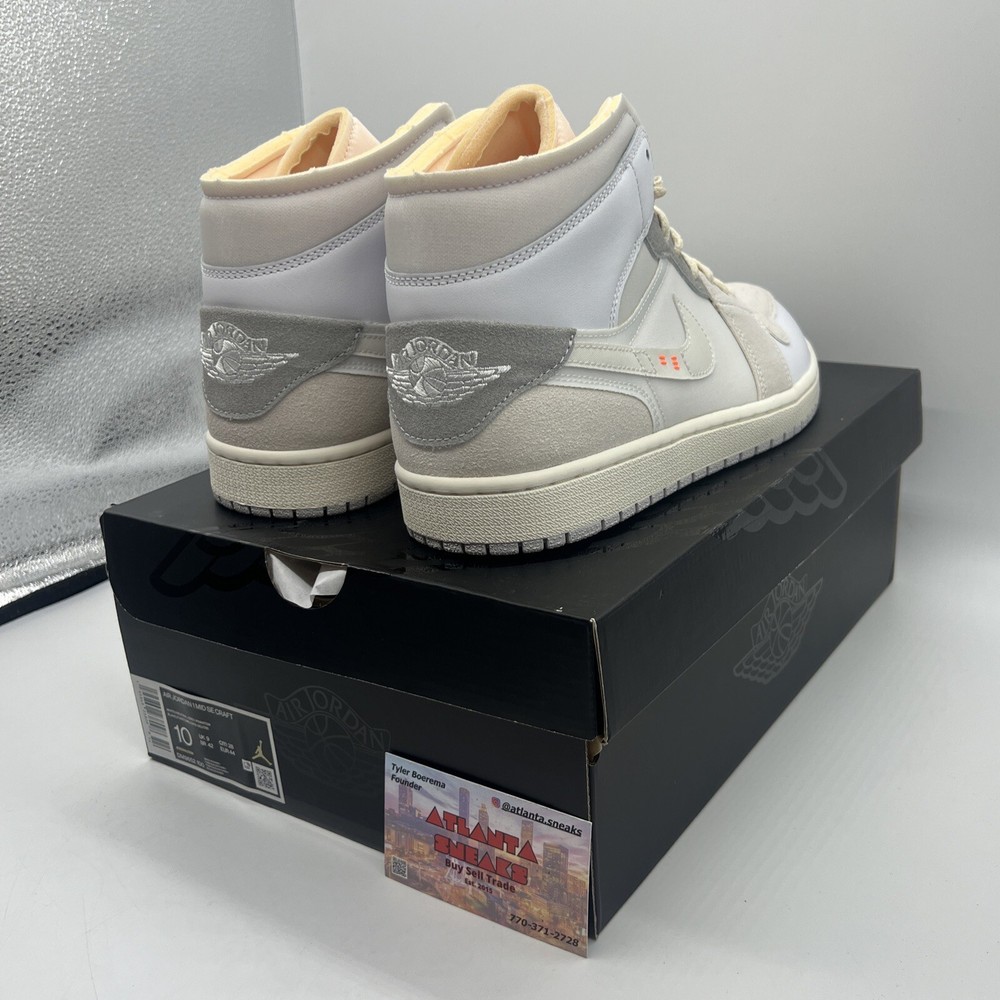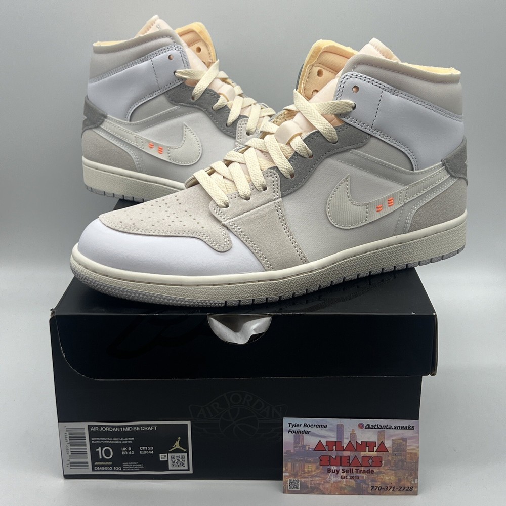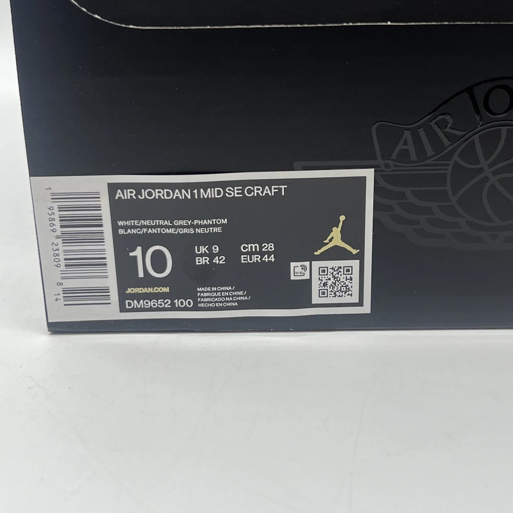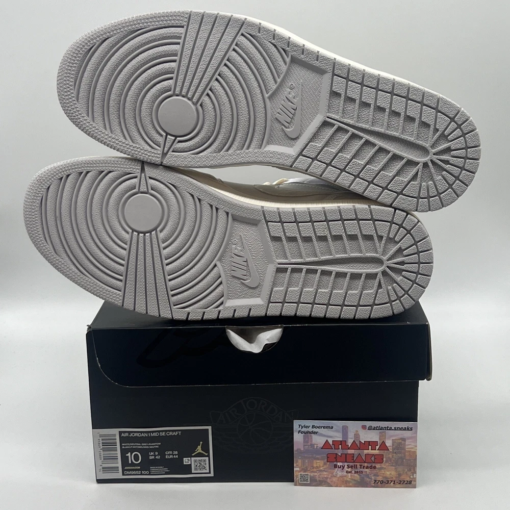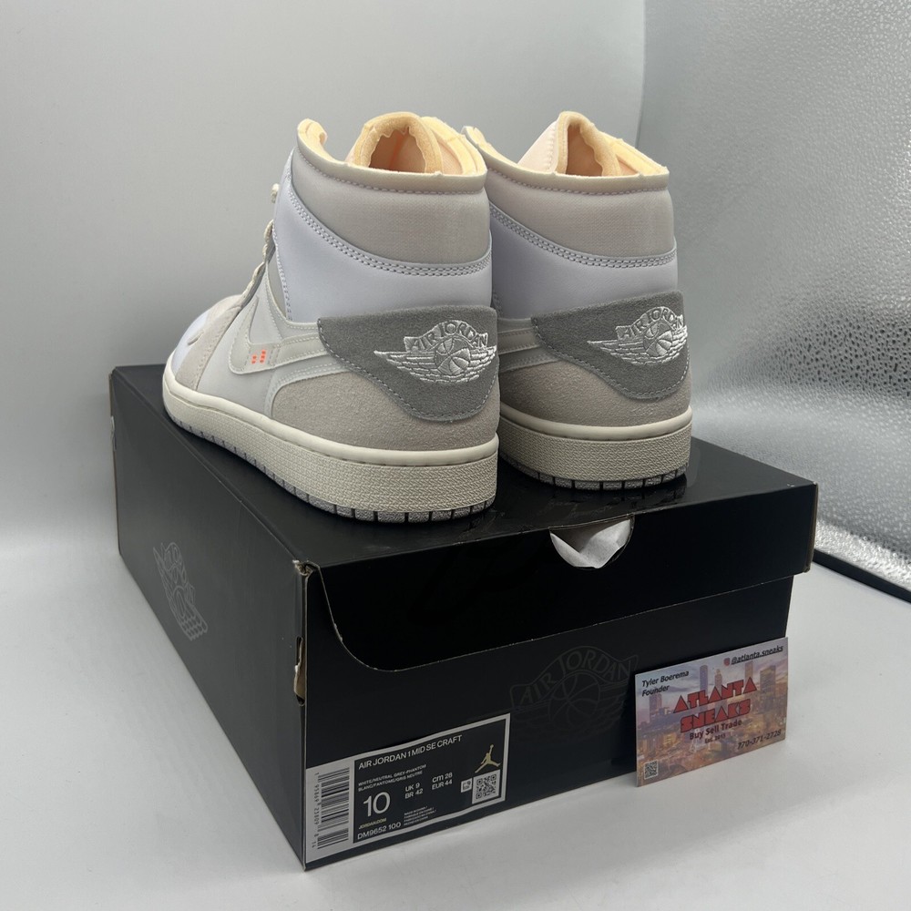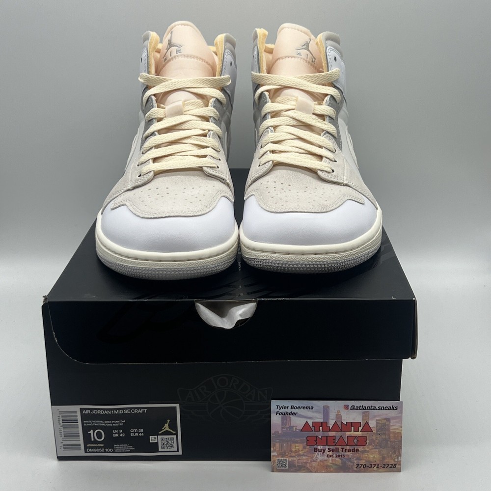 Introducing the Jordan 1 Mid SE Craft White, a stylish and versatile sneaker for men. This shoe boasts a mid-top silhouette and a sleek white colorway that is perfect for any outfit. It features the classic Air Jordan 1 model with a style code of dm9652-100, and is part of the iconic Air Jordan product line. Made for athletic use, these shoes are brand new and come in the original box (OG All). They are perfect for those who want to look great while staying comfortable and active. These shoes are size 10 and are sure to impress anyone who sees them.