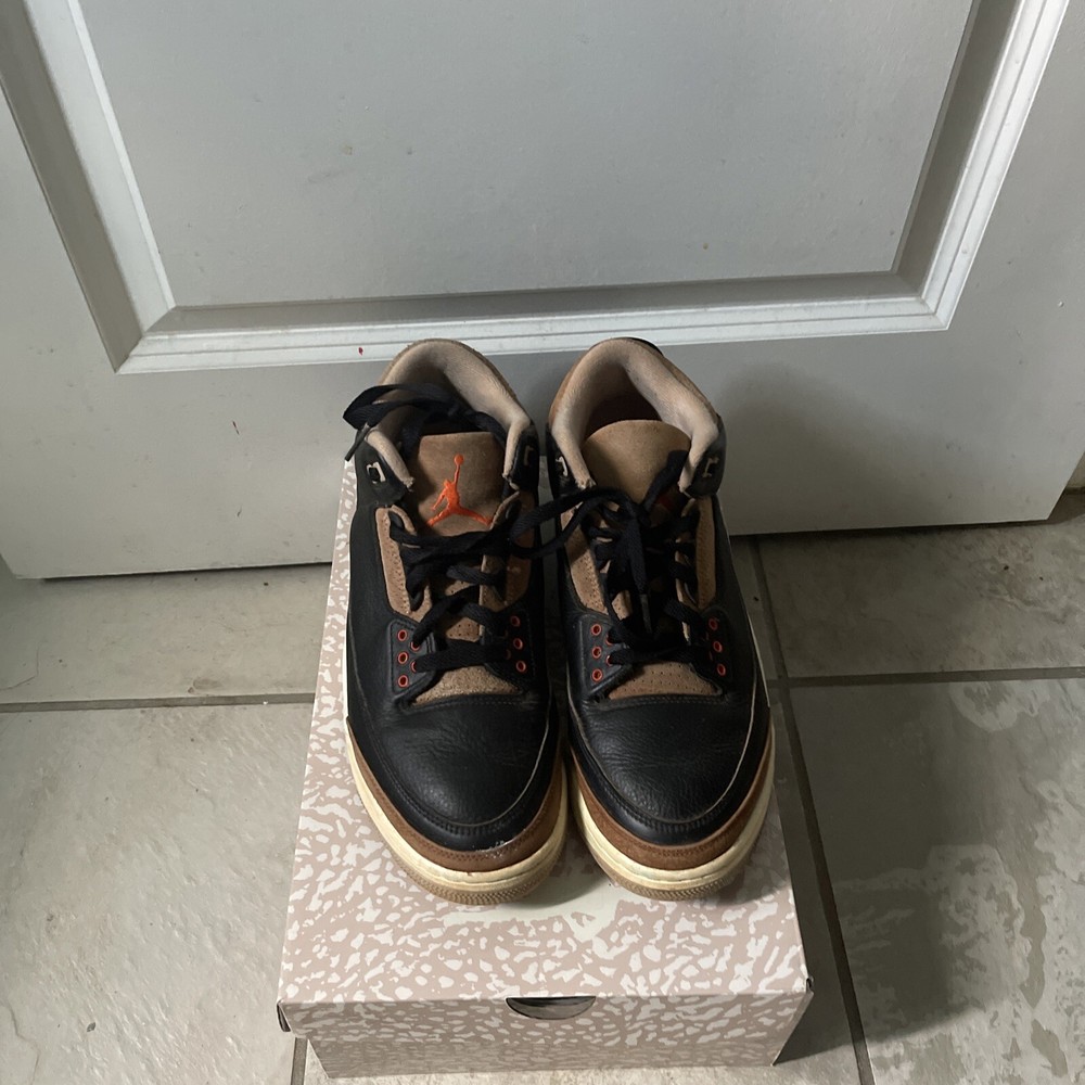 Elevate your sneaker game with these stylish Jordan 3 Retro Mid Desert Elephant sneakers. Crafted with a black leather upper and fossil stone accents, these shoes feature a mid-top shaft style and a comfortable athletic fit. The rush orange color pops against the black and fossil stone, making these shoes a statement piece for any outfit. These sneakers are perfect for any man who wants to add a touch of style to their wardrobe. The Air Jordan 3 Retro Mid Desert Elephant is a must-have for any sneaker enthusiast, and the release date of 20220731 makes them a rare find. Don't miss out on the chance to own these stunning shoes.