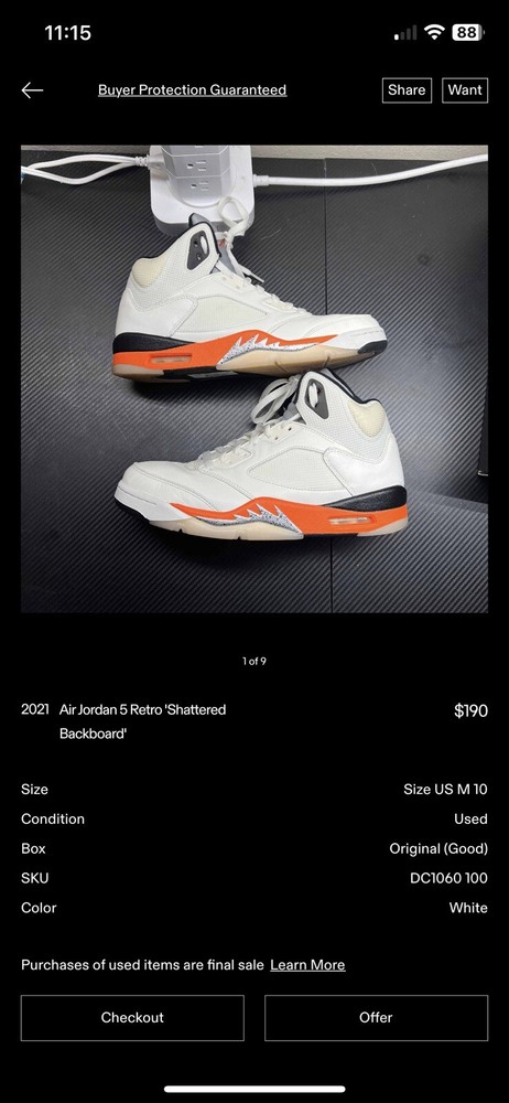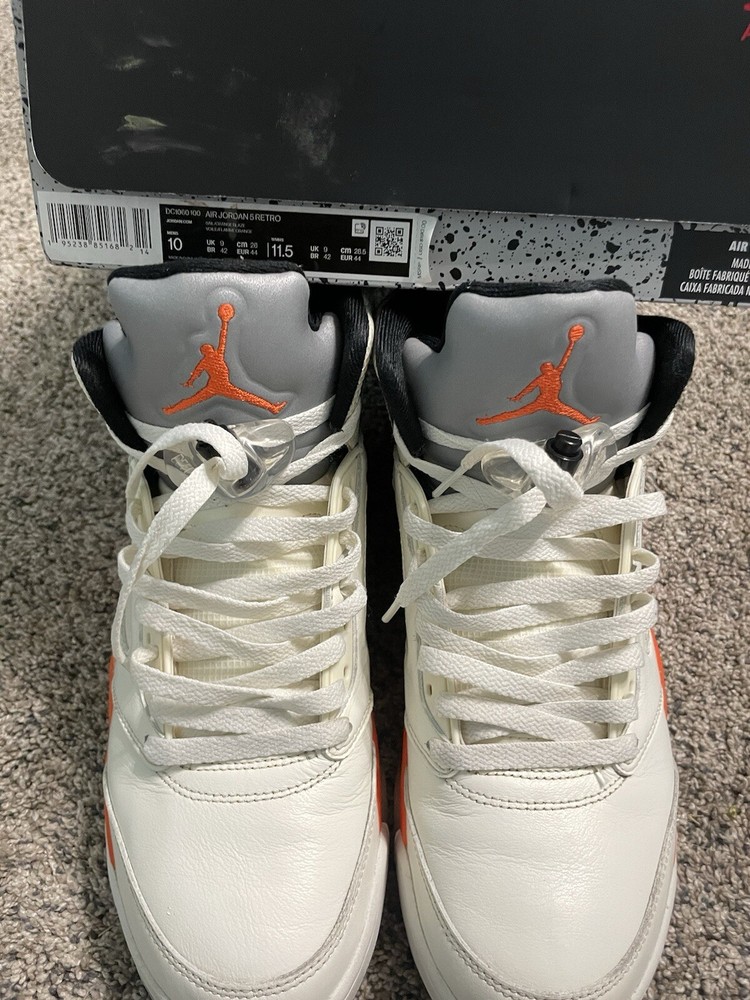 These Jordan 5 Shattered Backboards are a must-have for any sneakerhead! The size 10 fits perfectly, and they're in amazing condition—barely worn, just a few light uses. The iconic orange and black colorway pops, and having the OG box is a huge plus. Super comfortable with great ankle support, and they still look fresh out the box. Definitely worth adding to your collection!