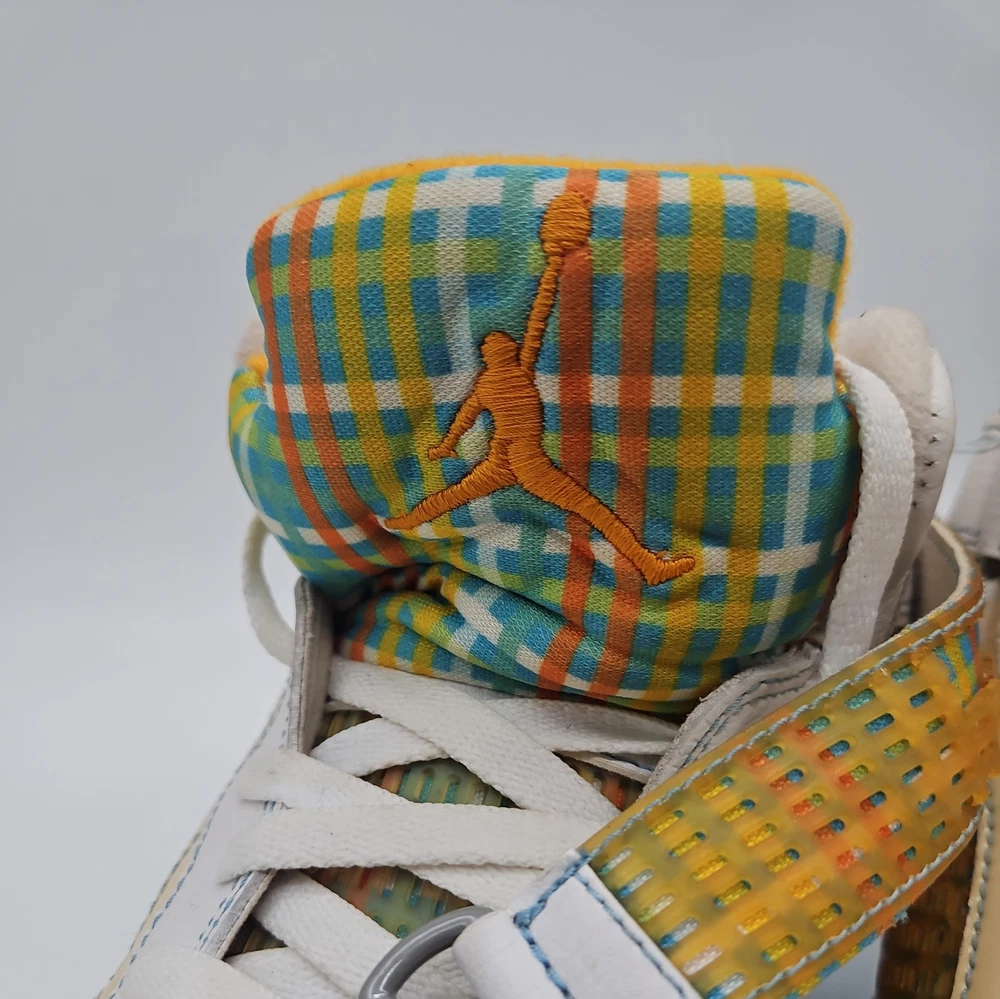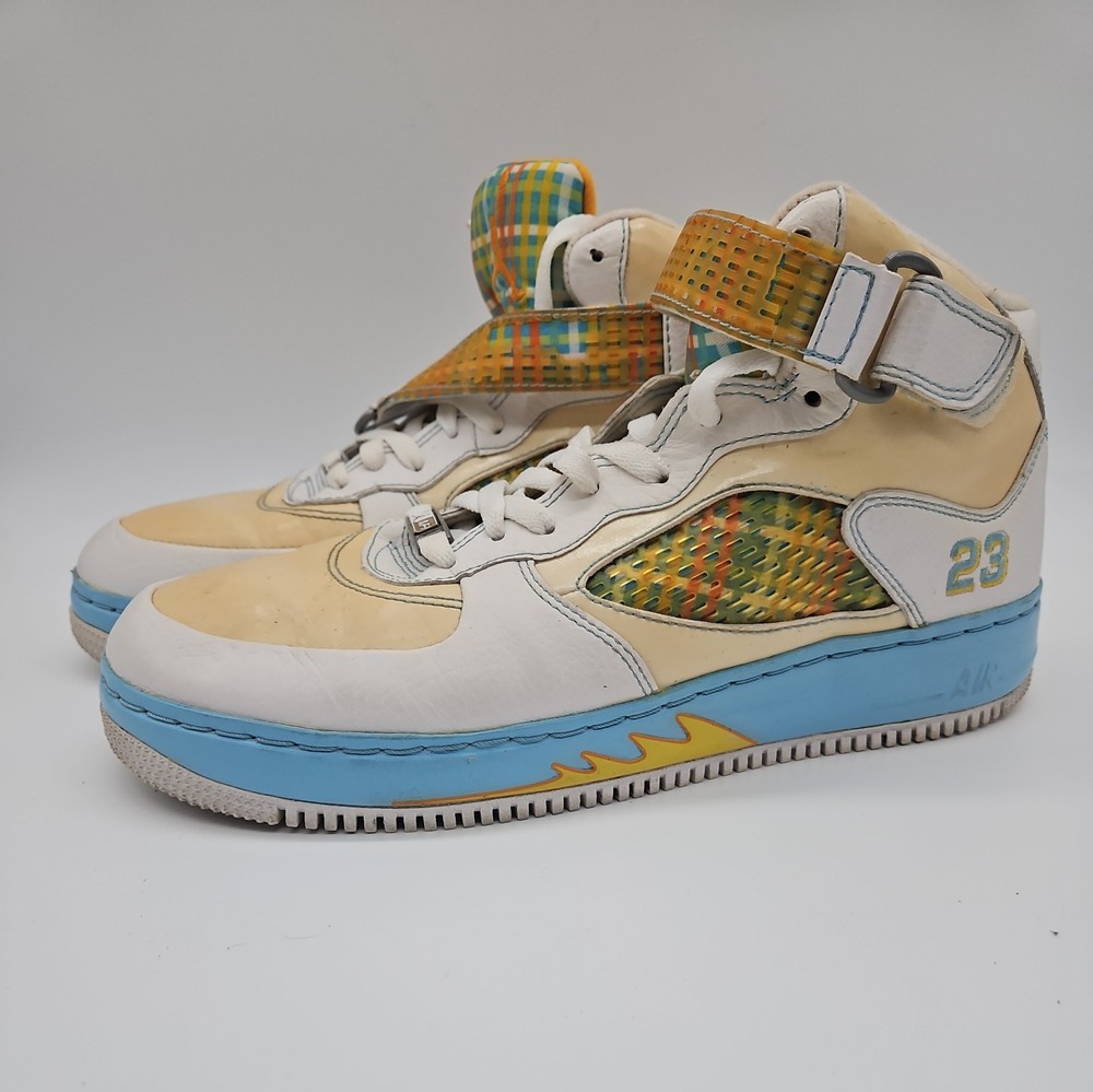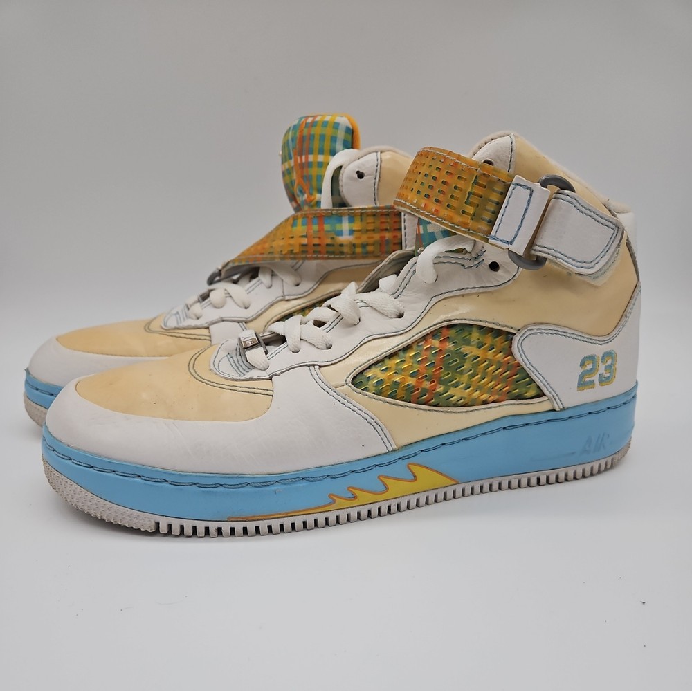 Decent condition except for small scuff on right toe. Left strap some of the rubber grid is missing, right strap has a crack in the grid. see photos Size 10 Elevate your sneaker game with the Jordan Fusion 5 in a crisp white colorway, a stylish mid-top silhouette that pairs classic design with modern flair. The unique “Orange Peel” variation from 2008 adds a distinctive touch to this iconic model, making it a standout choice for enthusiasts and collectors alike. Designed for men's US shoe size 12, these kicks feature the revered Air Jordan product line's quality and are identified by the style code 322882-181. Whether you're hitting the courts or the streets, these athletic sneakers provide both comfort and style, encapsulating the essence of the Jordan brand's legacy.