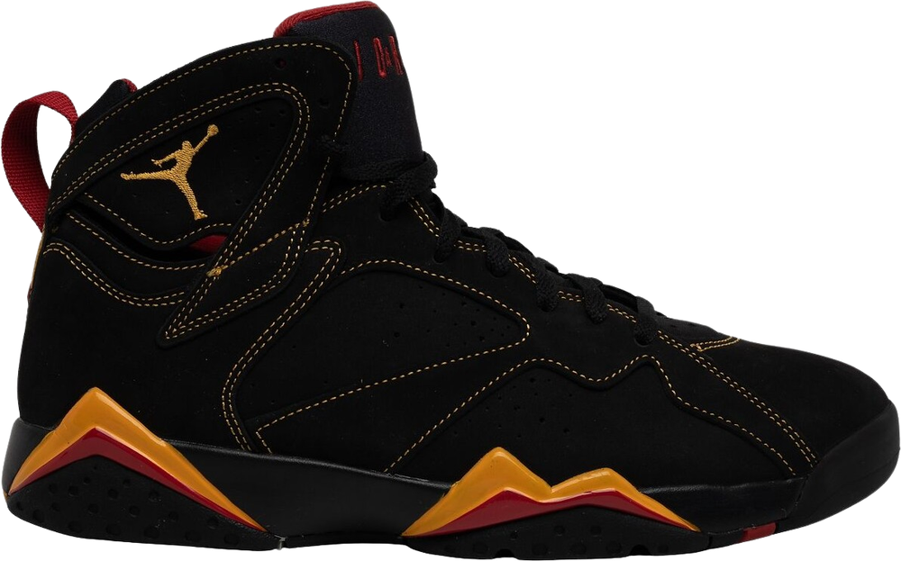 The Jordan 7 Retro Citrus is a sneaker from the Air Jordan line. It is a mid-top shoe with a black colorway and a citrus orange accent. The shoe is made of leather and features a neoprene inner sleeve for a snug fit. The Air Jordan 7 was first released in 1992 and was designed by Tinker Hatfield. This particular model was released in 2022 and is part of the Retro collection.