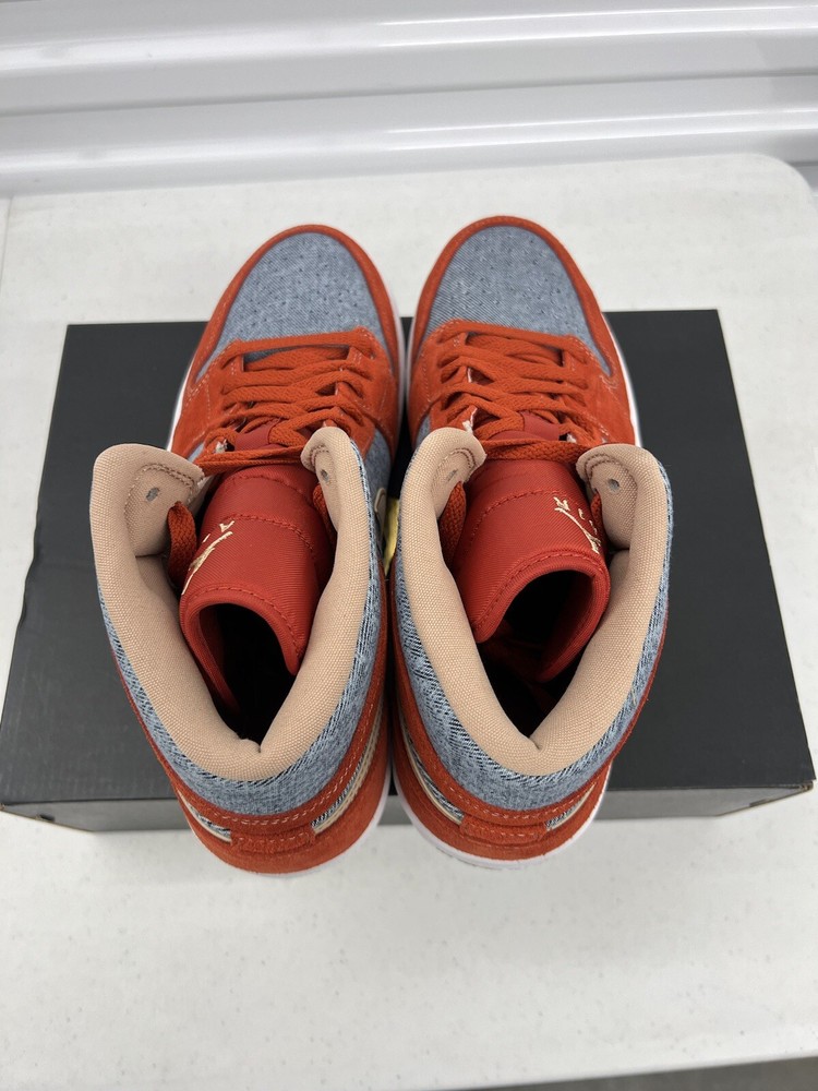 Elevate your sneaker game with these stylish Air Jordan 1 Mid Denim Red sneakers. Crafted with a denim upper and a vibrant Cinnabar/Hemp/White colorway, these shoes are perfect for any casual or athletic occasion. The Mid Top silhouette and athletic design make them both comfortable and stylish, while the Style Code DM4352-600 adds a unique touch. These sneakers are a must-have for any fashion-forward individual who wants to make a statement. Whether you're hitting the court or the streets, the Air Jordan 1 Mid Denim Red sneakers are sure to turn heads. Get them now and step up your style game!