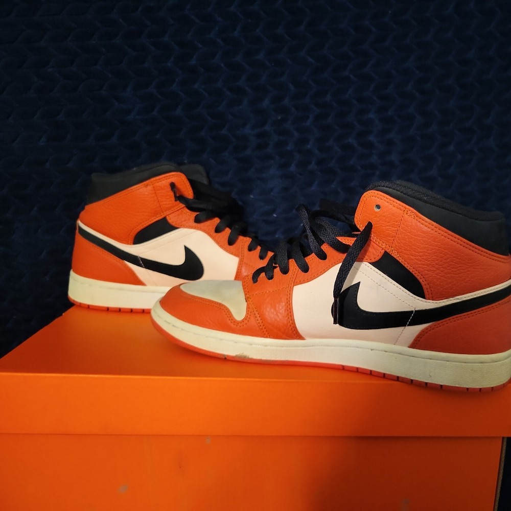 These Air Jordan 1 Retro SE Mids in Team Orange look amazing! Size 11 fits perfect, and they’re lightly worn with barely any scuffs—so clean you’d think they’re new. Comes with original laces inside and a Nike replacement box (no OG box). Love that I could pay with Cash App too. Solid deal for a fresh pair of kicks!