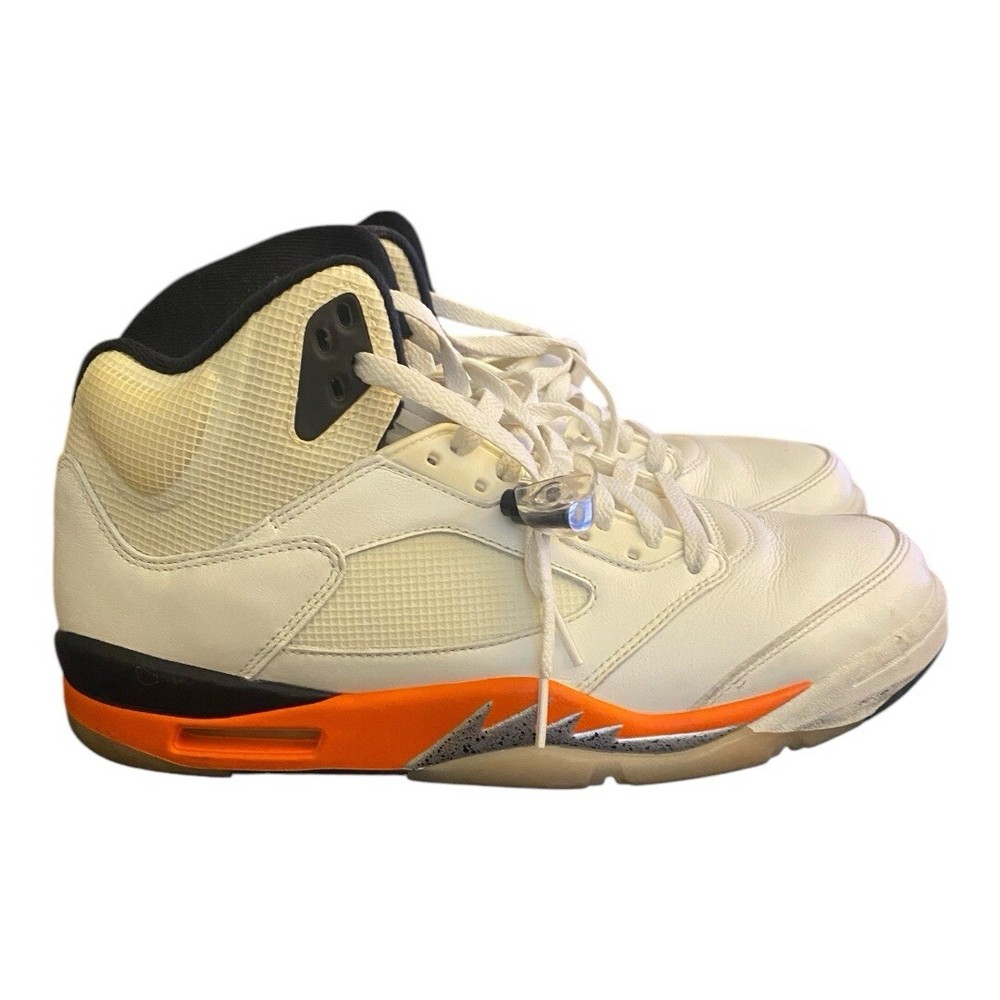 These Jordan 5 Shattered Backboards are fire! The white and orange colorway pops, and the pre-owned condition is still clean. Super comfortable with that classic Air cushioning—perfect for hooping or just flexing in style. The details are crisp, and they fit true to size. A must-have for any sneakerhead looking to add heat to their rotation.