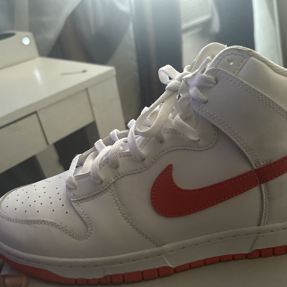 Elevate your sneaker game with these Nike Air Ship sneakers in white and team orange. With a mid-top shoe shaft style, these sneakers are perfect for any casual occasion. The style code DX4976-181 and manufacturer color white/team-orange-white ensure a stylish and unique look. These sneakers are perfect for men who love athletic footwear. The Nike Air Ship model is part of the Nike Air product line and was released in 2022. The shoes come in a size 11 and are ideal for daily wear. Get your hands on these sneakers now and add a touch of style to your wardrobe.But they was worn once or twice but still there is nothing wrong with them.All it doesn’t have is a box