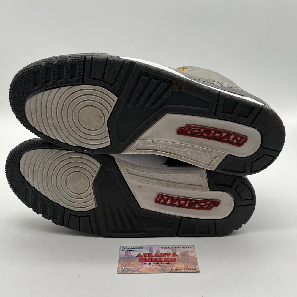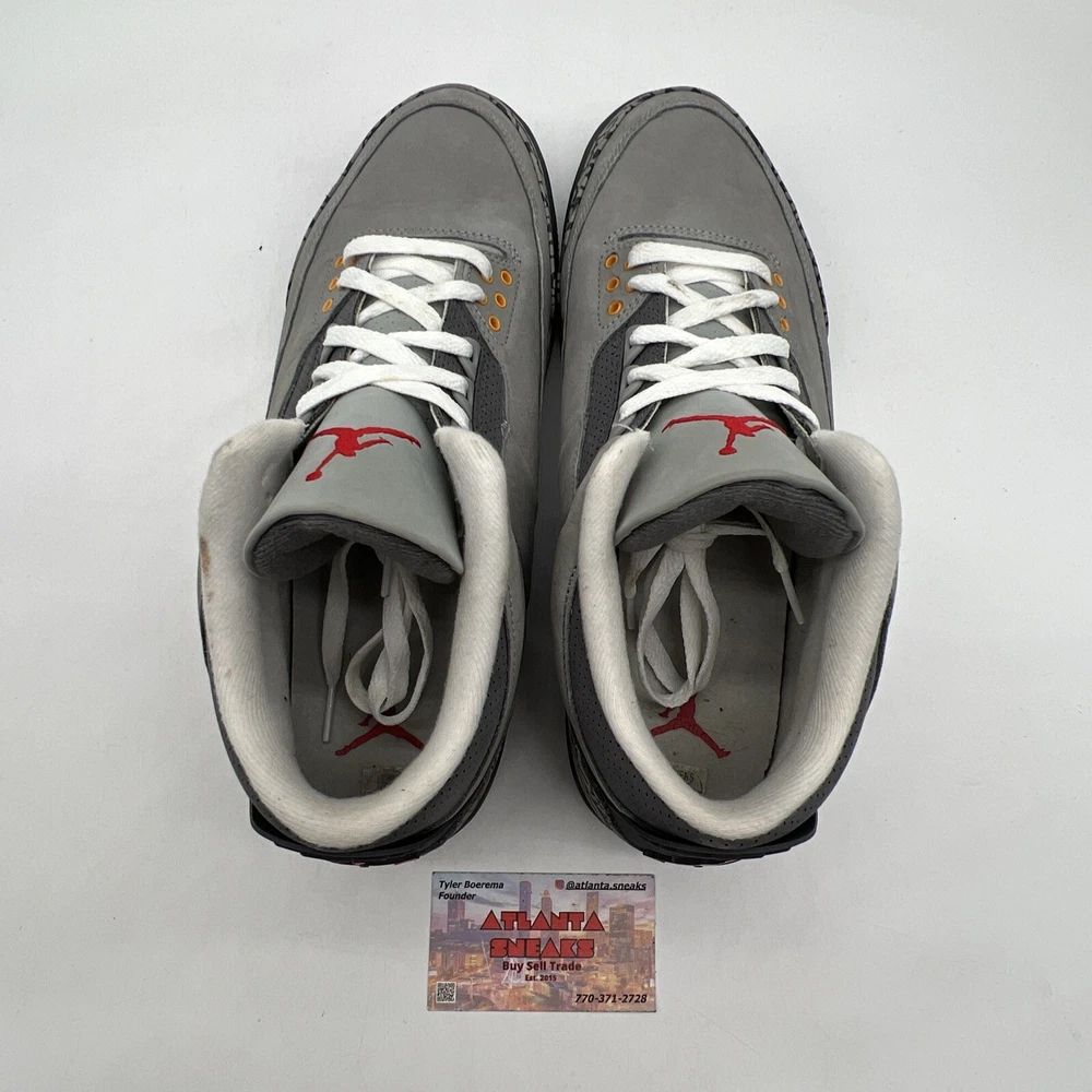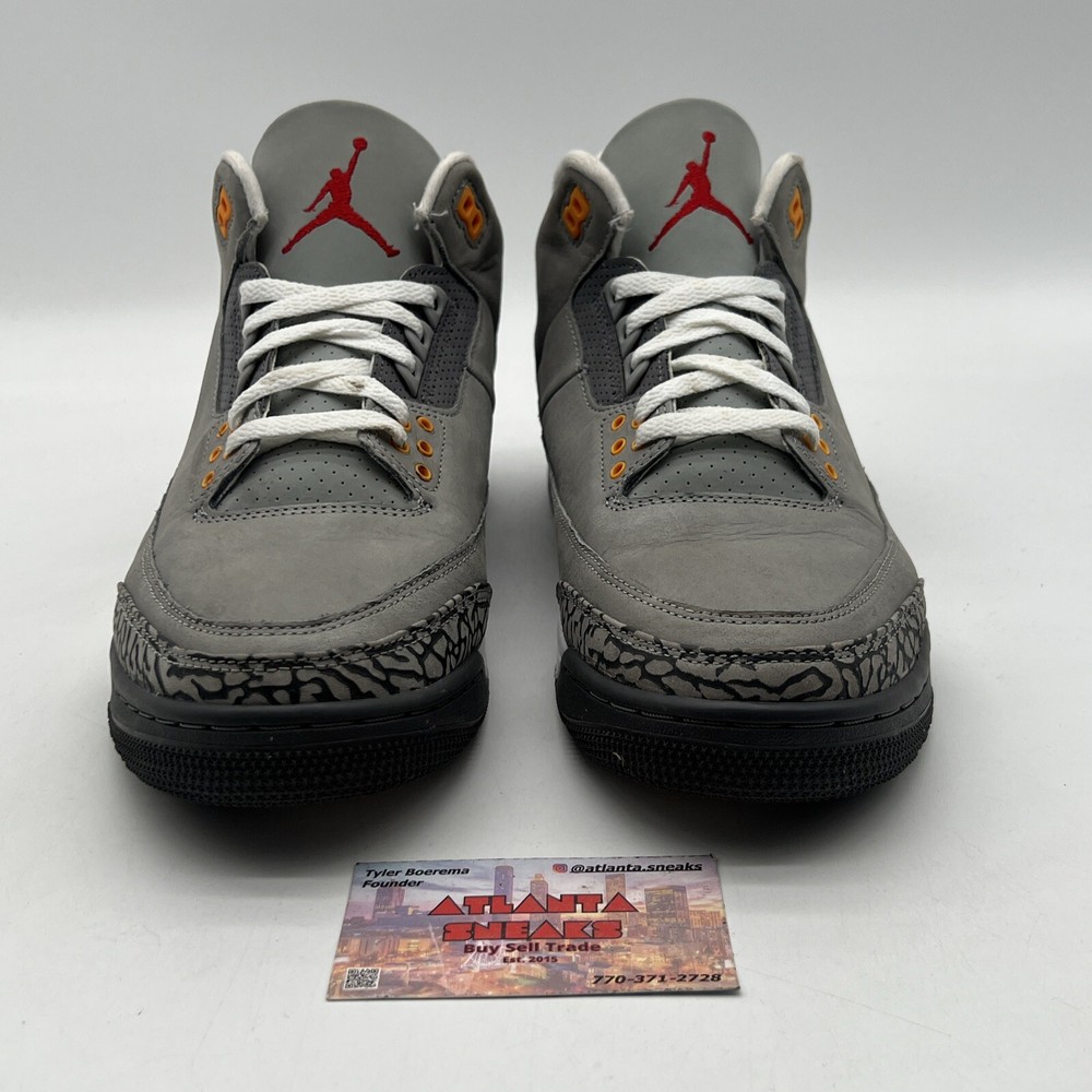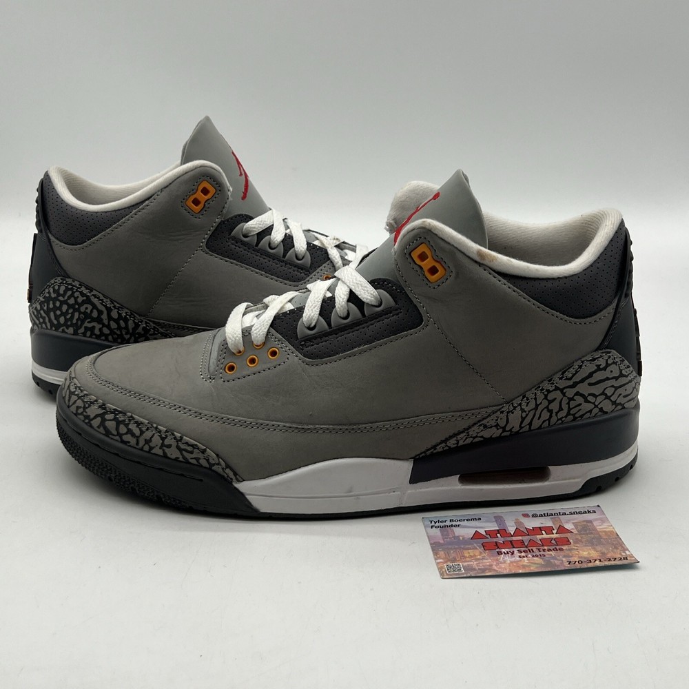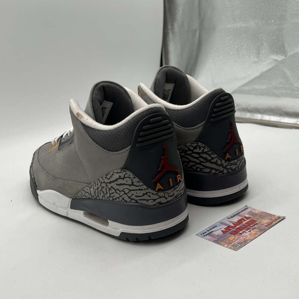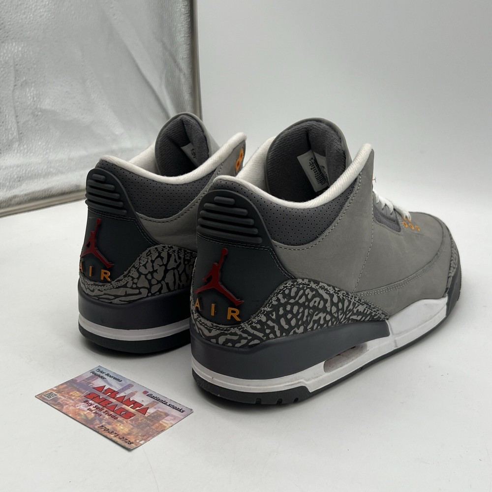 Introducing the Size 11.5 - Jordan 3 Retro Mid Cool Grey Orange Red Suede Leather (CT8532-012). This stylish sneaker is perfect for men who are looking for a comfortable and trendy shoe. The shoe features a mid-top silhouette, with a gray color and orange-red accents. It is made of high-quality leather and has a style code of CT8532-012. The Jordan 3 Retro Cool Grey sneaker is a must-have for any sneakerhead. It is a perfect combination of style and comfort. This shoe is ideal for athletic activities and casual wear. The shoe is part of the Air Jordan product line and was released in 2021. It is available in US shoe size 11.5 and is suitable for men. No box