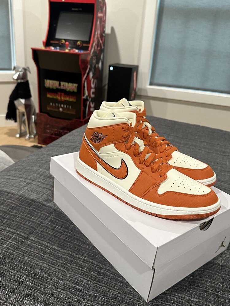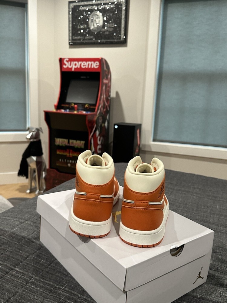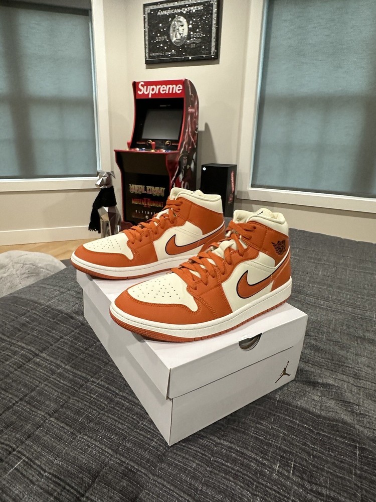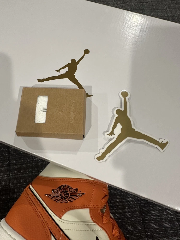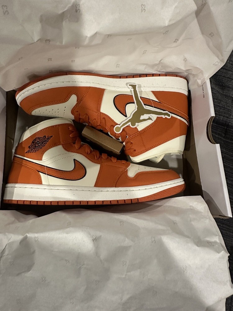 These Air Jordan 1 SE Mid Sport Spice sneakers are fire! Fresh out the box, never worn, and in perfect condition—even comes with the original laces and sticker. If you're looking for a clean, brand-new pair of kicks, this is it. A must-have for any sneakerhead!