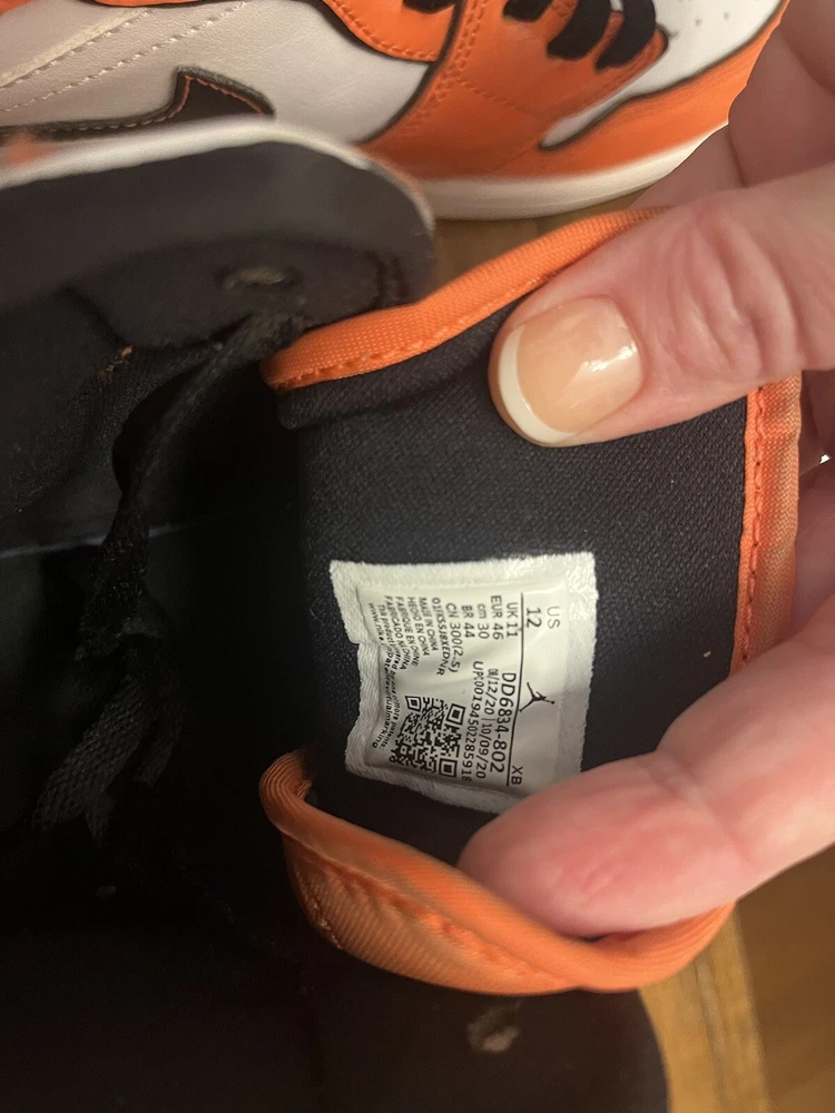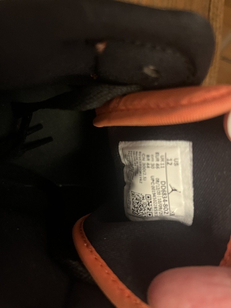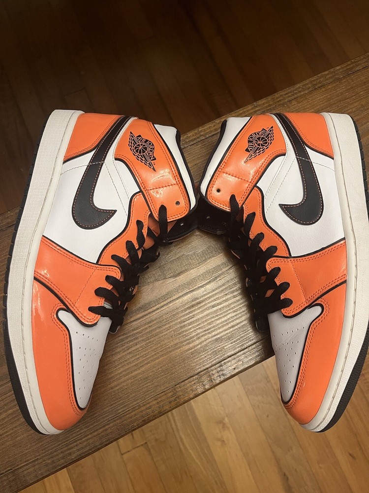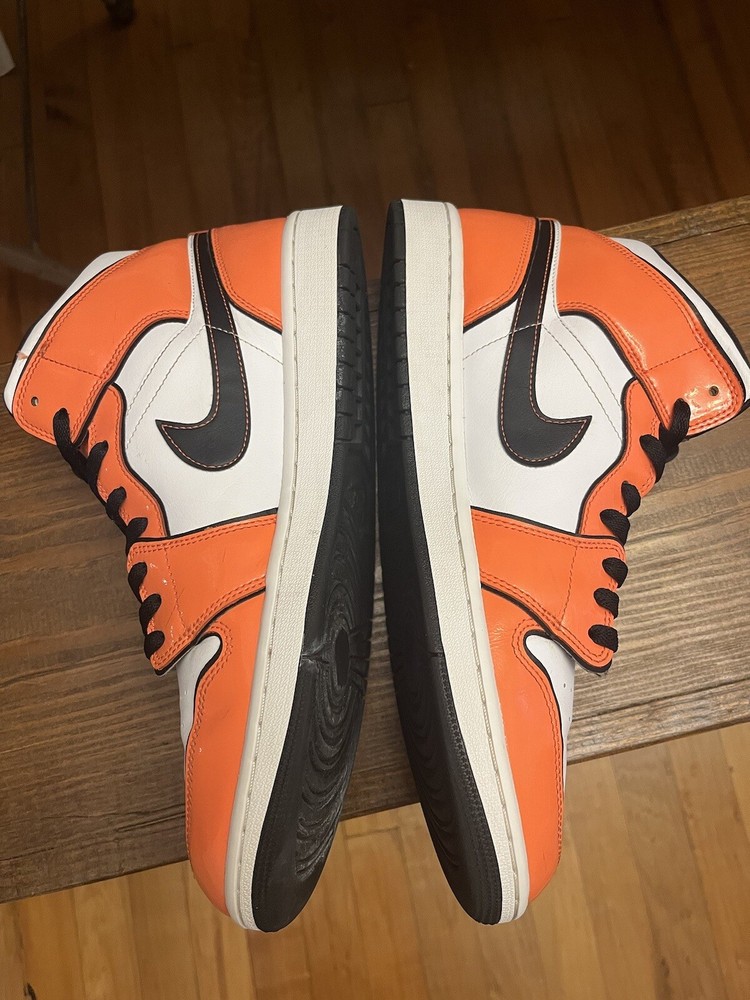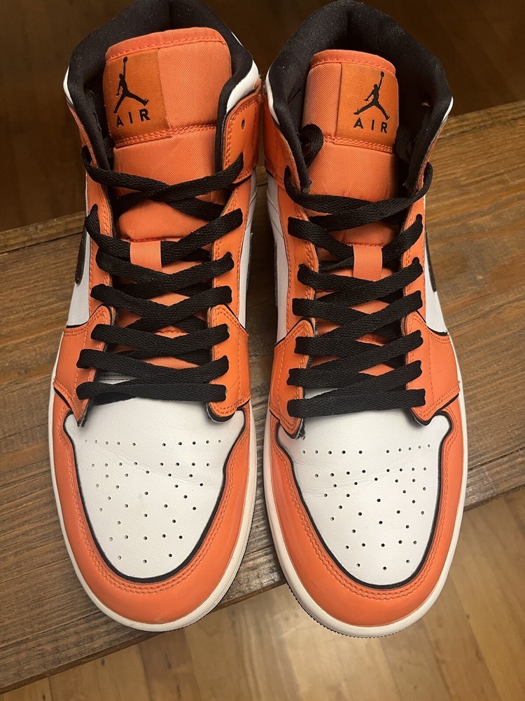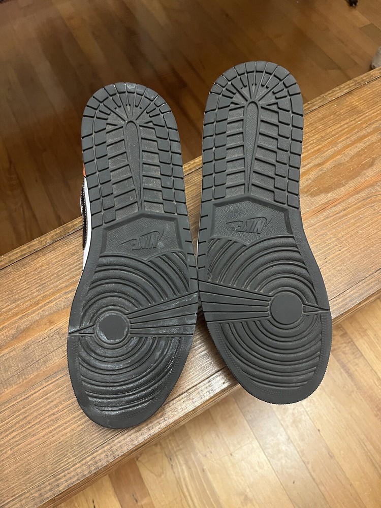 Mens Jordan 1 s size 12. Rarely worn. Orange, Black, and white. Asking $145 obo. Very slight creasing that could be ironed out. Please see pictures for details. Feel free to message me with questions.