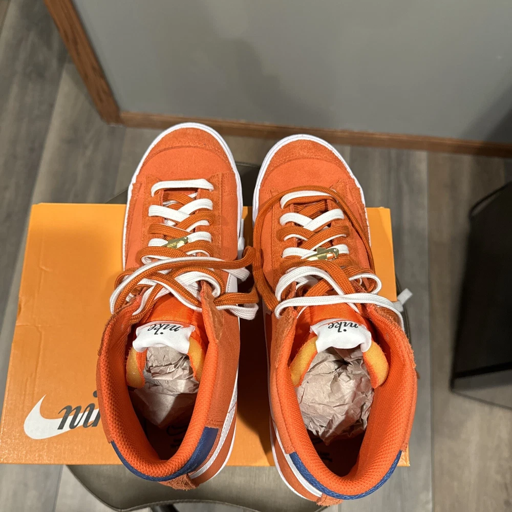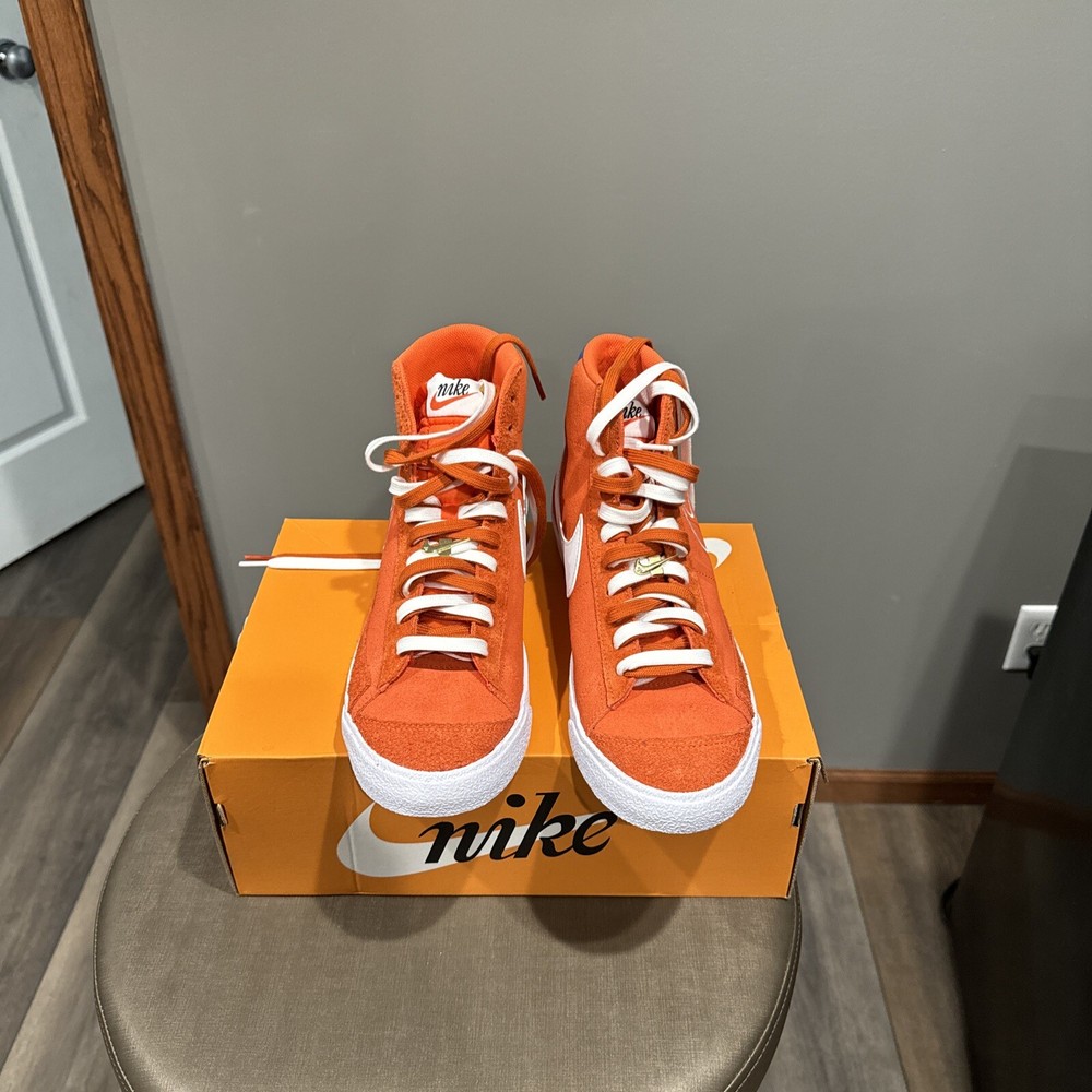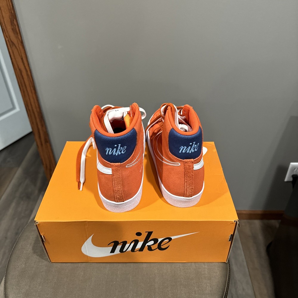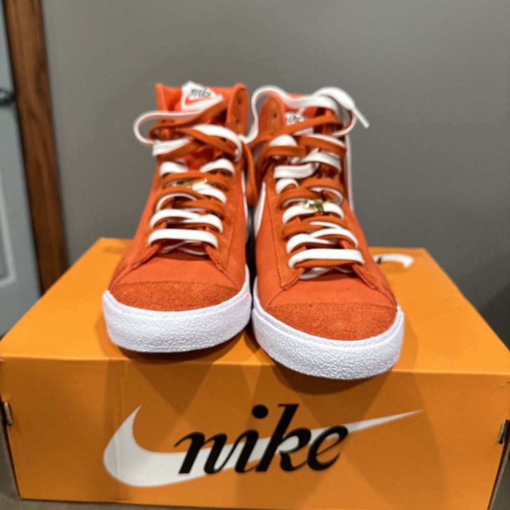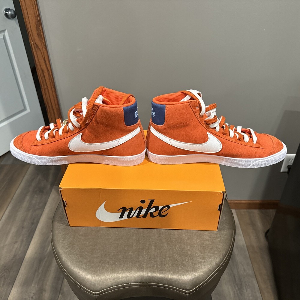 Elevate your sneaker game with these stylish Nike Blazer '77 Mid First Use - Orange sneakers. Featuring a mid-top shoe shaft style, these sneakers are perfect for any casual occasion. The deep royal blue, white, and orange color combination is sure to turn heads and make a statement. Crafted with a suede upper material, these sneakers are built to last. The style code DC3433-800 and model name Nike Blazer make these sneakers a must-have for any sneaker enthusiast. With a release date of 20210621, these sneakers are perfect for anyone looking to stay ahead of the curve. Grab your pair today and step up your sneaker game!