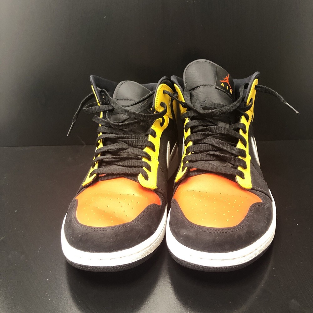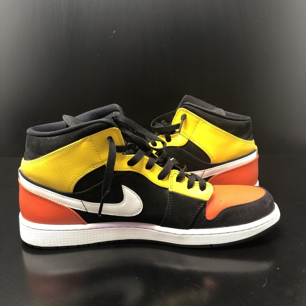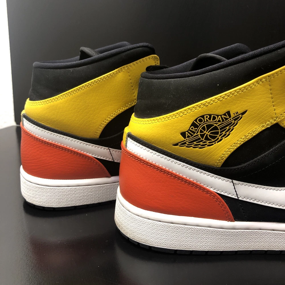 Size 13 - Air Jordan 1 SE Mid Amarillo Orange Yellow Black Mens Sneakers This sleek and stylish pair of sneakers, the Size 13 - Air Jordan 1 SE Mid Amarillo, is a must-have for any sneakerhead. Crafted with a mid-top shoe shaft style, these athletic shoes are perfect for men who want to make a statement with their footwear. Featuring a striking black, amarillo, white, and team orange colorway, these sneakers are sure to turn heads. The style code, 852542-087, and release date, 20200123, add to the exclusivity of these shoes. Don't miss your chance to add these Air Jordan 1s to your collection.