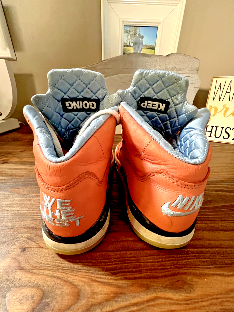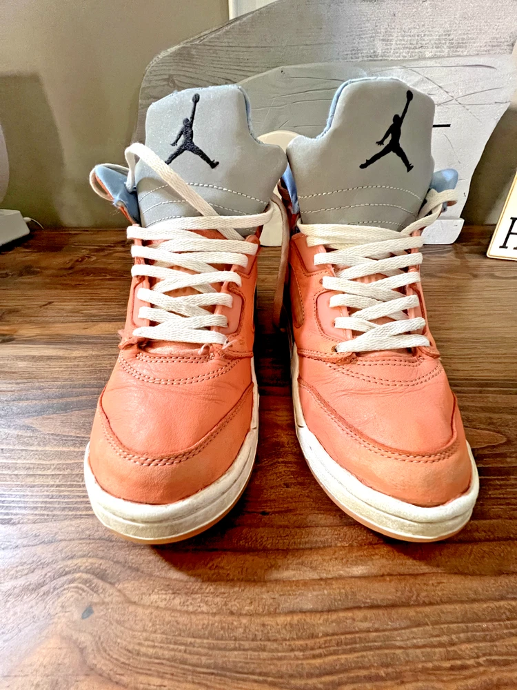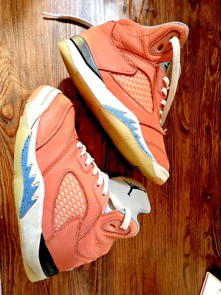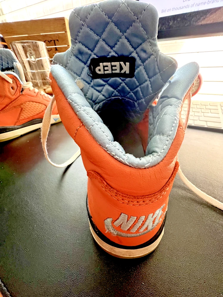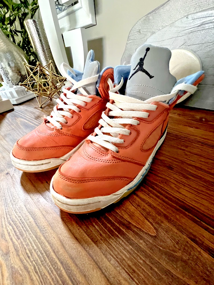 🎧🔥 Elevate your little one's sneaker game with these exclusive Jordan 5 Retro x DJ Khaled Mid 'We The Best' kicks in the stunning Crimson Bliss colorway! 🔥🎧 Looking to add a touch of 🔥DJ Khaled🔥 flair to your kid's wardrobe? Look no further! These youth-sized Jordan 5s are not just shoes; they're a statement. Crafted in collaboration with the iconic DJ Khaled, these kicks are dripping with style and swag. Sure, they're pre-loved, but that just adds to their allure! These shoes have been well-loved and worn in, but they still have plenty of life left in them. From the playground to the streets, they're ready to accompany your little one on all their adventures. Featuring the exclusive Crimson Bliss colorway, these kicks are sure to turn heads wherever your child goes. With a size 2.5Y, they're perfect for growing feet eager to make a bold statement and stand out from the crowd. But it's not just about looks – these Jordan 5s are built for performance too. The durable construction and supportive fit ensure that your little one can move with ease and confidence, no matter what the day brings. So why wait? Give your child's sneaker collection a serious upgrade with the Jordan 5 Retro x DJ Khaled Mid 'We The Best' in Crimson Bliss. With every step, they'll be making a statement that's as unique as they are. Don't miss out on this opportunity to add a touch of 🔥DJ Khaled🔥 magic to your kid's wardrobe. Snag these exclusive kicks today and watch as they become the envy of the playground! 🎧🔥✨
