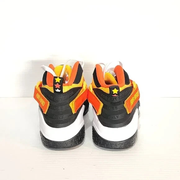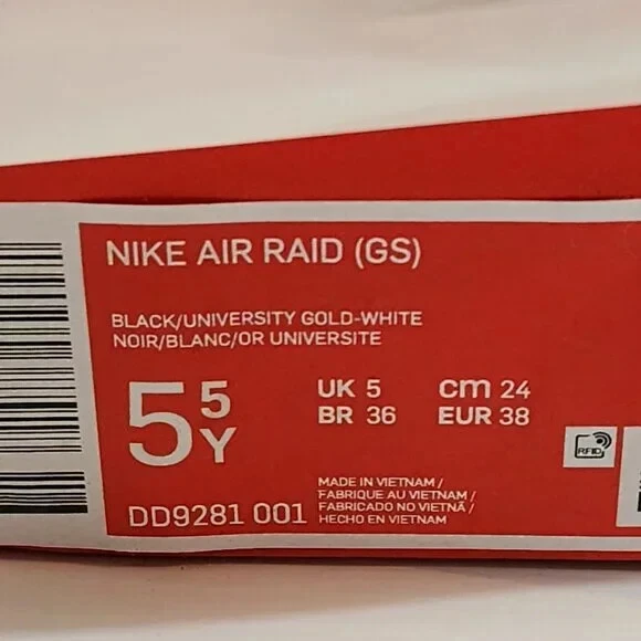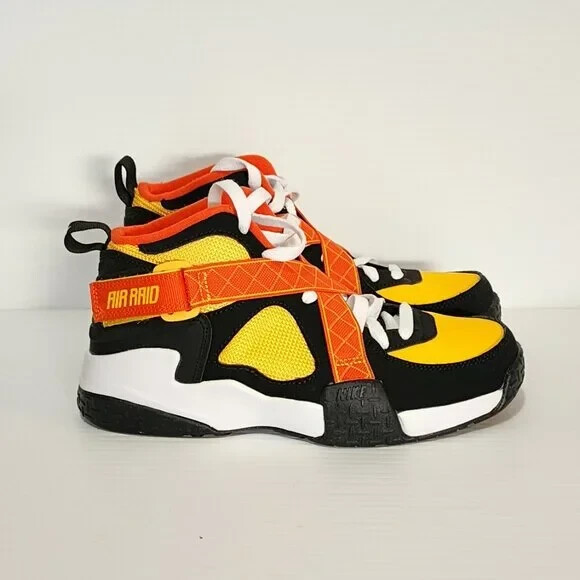 Introducing the Nike Air Raid Mid Roswell Rayguns, a stylish and functional sneaker suitable for boys and unisex kids. This shoe features a mid-top design, orange color, and the iconic Nike Air product line. It is perfect for athletic activities and casual wear alike. The shoe is sized at 5 and has a unique character design, featuring the popular Boy character. It is made by the trusted brand Nike and is part of the Nike Air Raid model line. This sneaker is perfect for any young athlete or fashion-conscious individual.