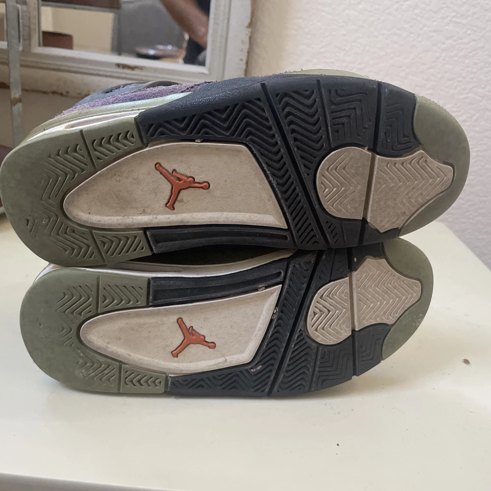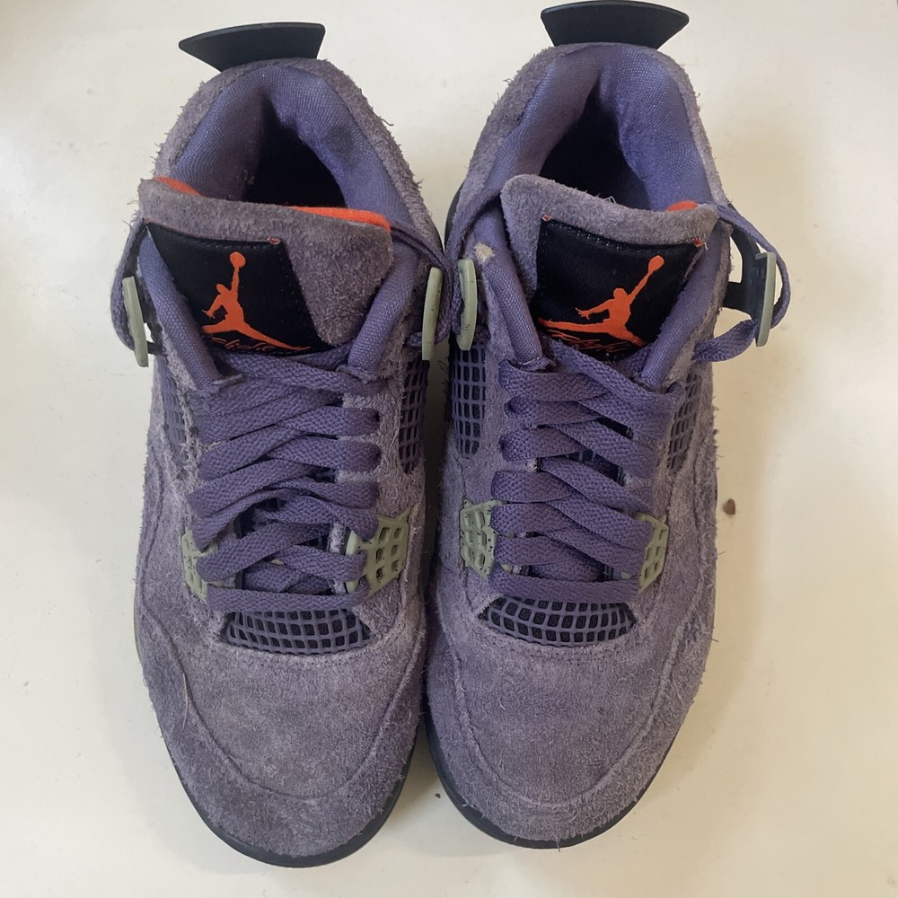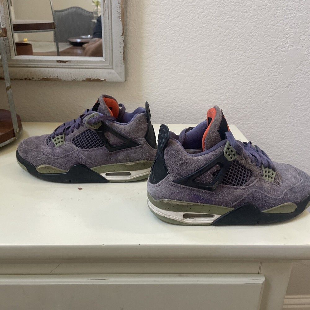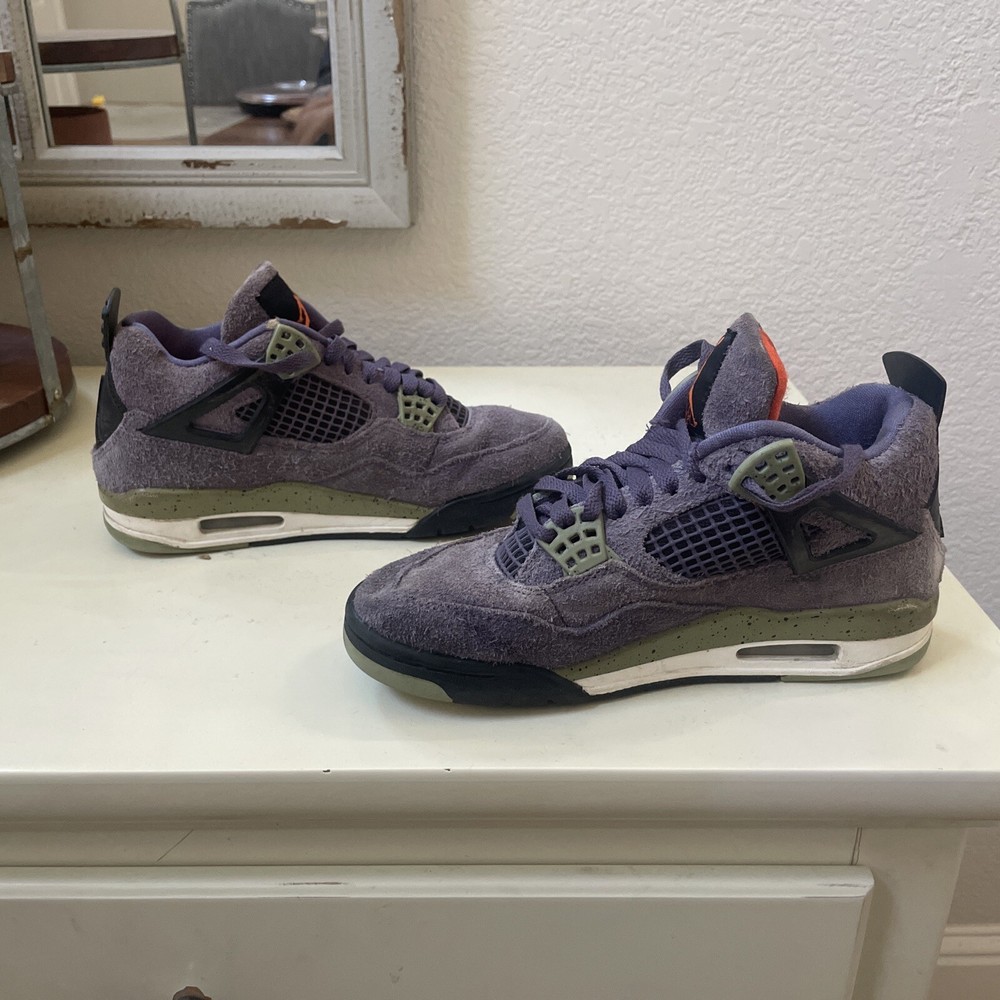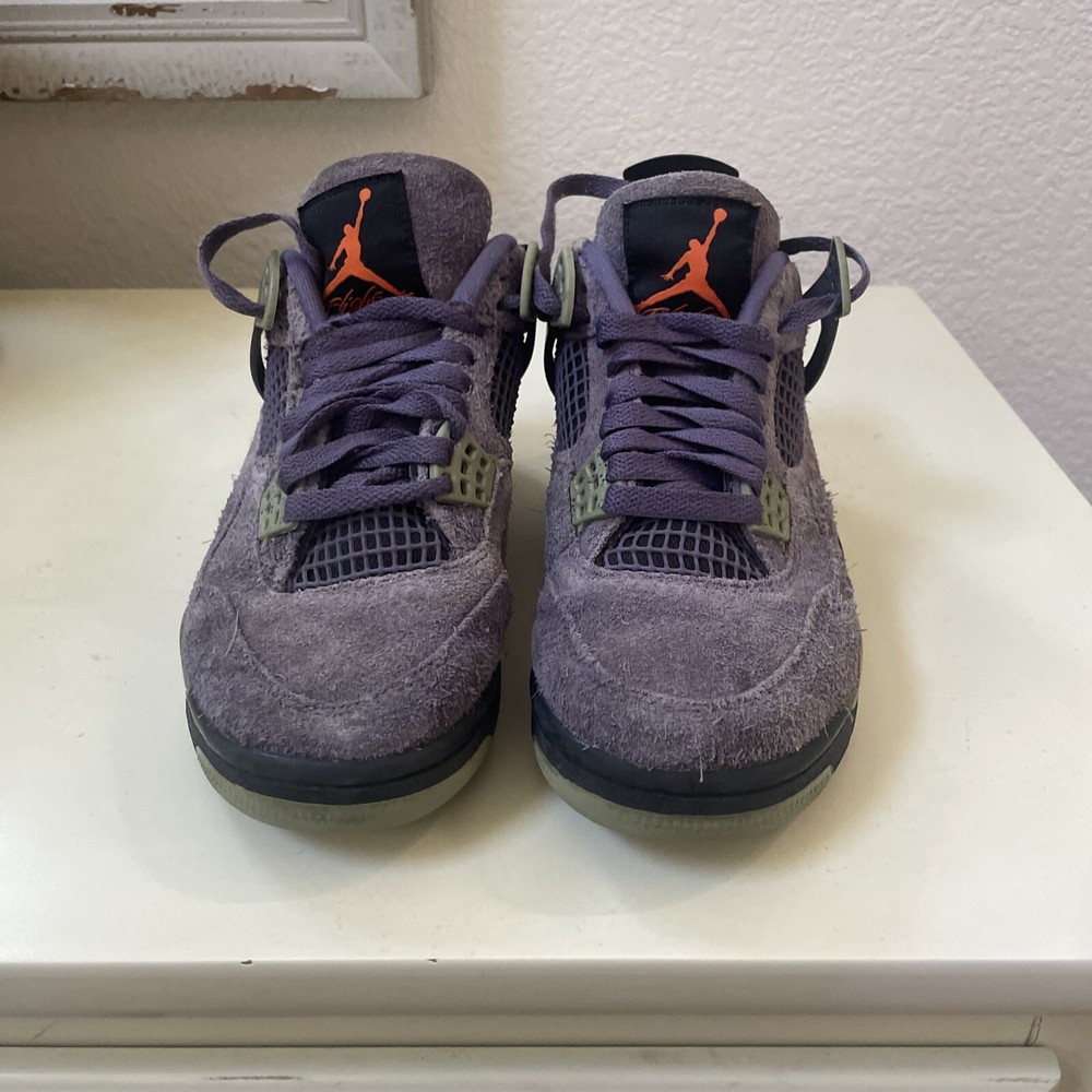 Up for sale is a pair of Jordan 4 Retro Mid sneakers in the eye-catching Canyon Purple colorway. These sneakers are a women's size 5.5 and are perfect for anyone looking to add some stylish flair to their athletic shoe collection. The shoe features a mid-top shaft style, AQ9129-500 style code, and the iconic Air Jordan 4 silhouette. The Canyon Purple/Anthracite/Alligator/Safety Orange color combination is sure to turn heads, while the sturdy construction and comfortable fit make these sneakers perfect for both casual wear and athletic activities. Don't miss out on your chance to own a piece of sneaker history with these Air Jordan 4 Retro Mids. Used out of box.