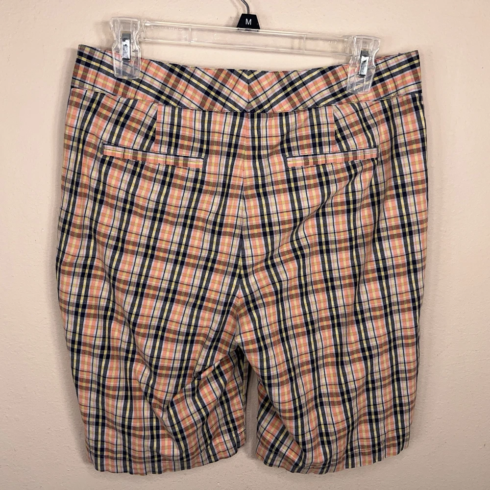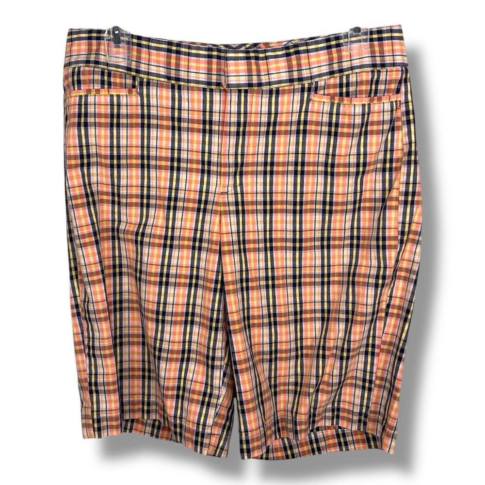 WE MEASURE EACH ITEM CAREFULLY. PLEASE BE AWARE OF POSSIBLE COLOR VARIATIONS IN PHOTOS. PLEASE COMPARE OR CONFIRM BEFORE PURCHASING. Dockers brand Bermuda shorts Orange and blue plaid Mid rise curvy style Size 6 Waist: 31 Length: 19.5 Inseam: 10.5 Clothing is measured flat & multiplied by two, unless otherwise stated. Items will be shipped clean, free of odors, & ready to wear. Comes from a pet free & smoke free location. Items are preowned unless otherwise stated. Please make sure your address on file is correct blefore ordering. Please look at all photos. Wear and brand can affect sizing, so please read the measurements provided. All sales final. C30
