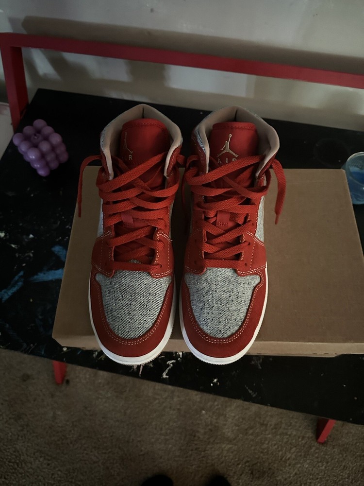 These Air Jordan 1 Mid Denim Reds are a total steal! The denim and red colorway pops, and they look even better in person. Worn just once, they feel brand new—super clean and well-kept. Super comfy with that classic AJ1 support. Cola Kicks delivered fast, and the quality is top-notch. Perfect for adding a fresh, unique touch to any fit. Love these!