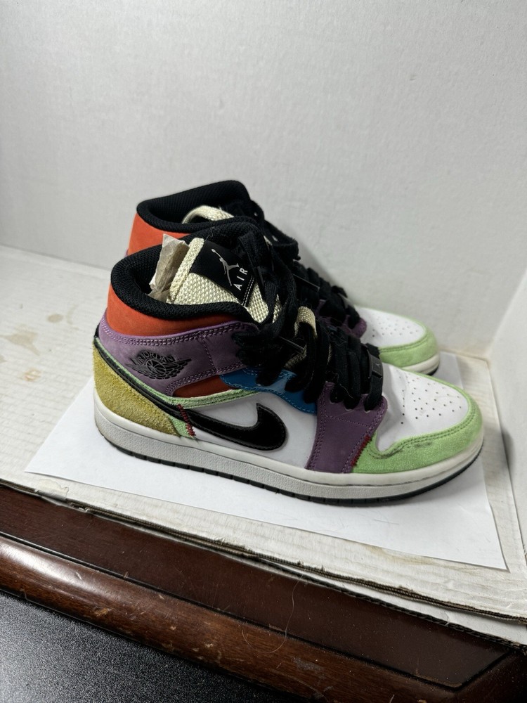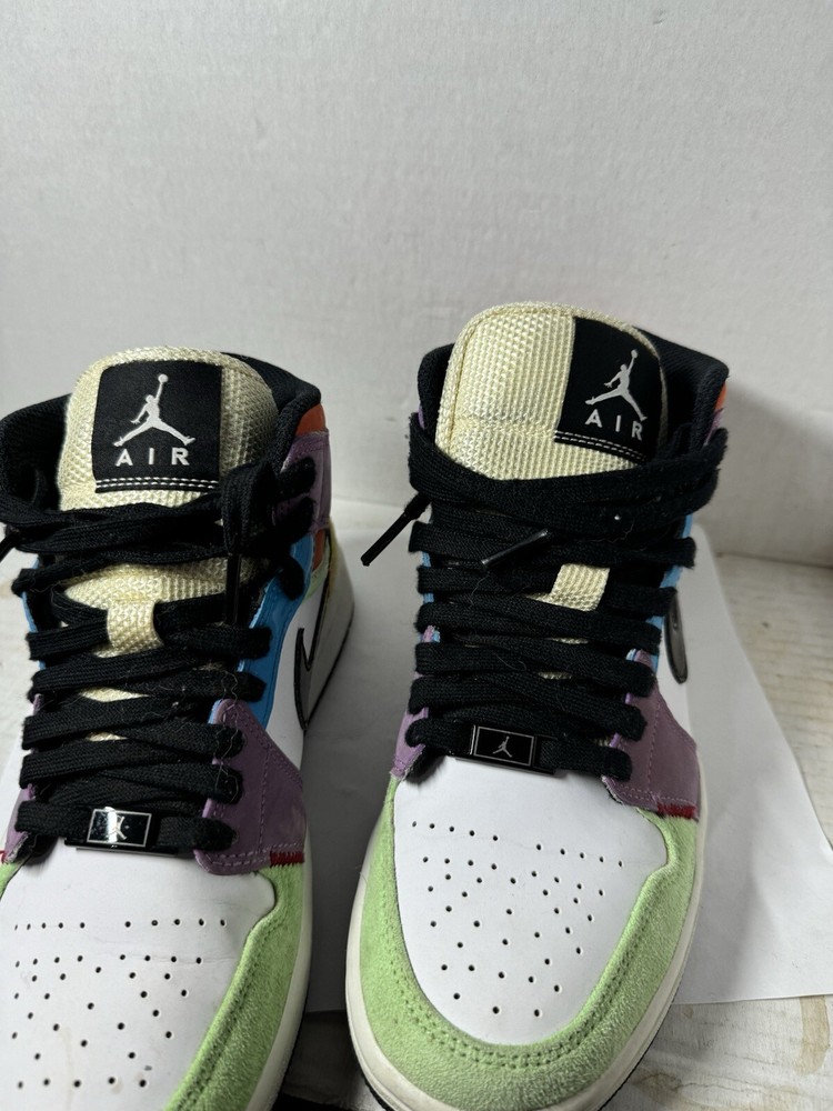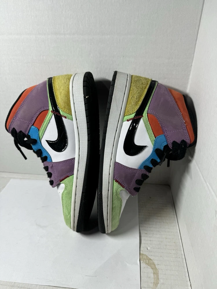 Elevate your sneaker game with these stylish Air Jordan 1 SE Mid Lightbulb W sneakers. Featuring a mid-top shoe shaft style, these sneakers come in a multicolor design with white, black, lightbulb, and team orange accents. The upper material is made of high-quality leather, ensuring durability and comfort. These sneakers are perfect for women who love athletic shoes and want to add a touch of style to their wardrobe. The Air Jordan 1 model is a classic, and this Lightbulb nickname adds a unique touch to the shoe. Don't miss out on the opportunity to own these amazing sneakers.