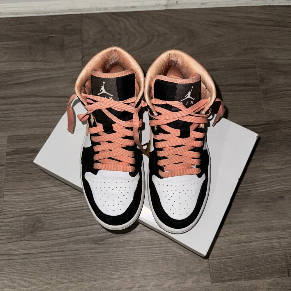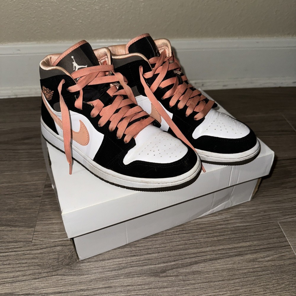 This stylish pair of sneakers is a must-have for any Jordan fan. The Air Jordan 1 SE Mid Peach Mocha W features a mid-top shoe shaft style and a trendy color combination of white, apricot, agate, and black. The shoe is designed for women and comes in a US shoe size of 6.5. The sneaker has a style code of Dh0210-100 and is part of the Air Jordan product line. It was released on March 17, 2021, and is an athletic type of shoe. The peach mocha nickname adds a unique touch to the shoe, making it a great addition to any sneaker collection.