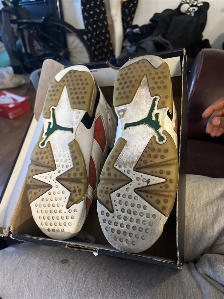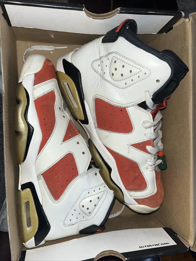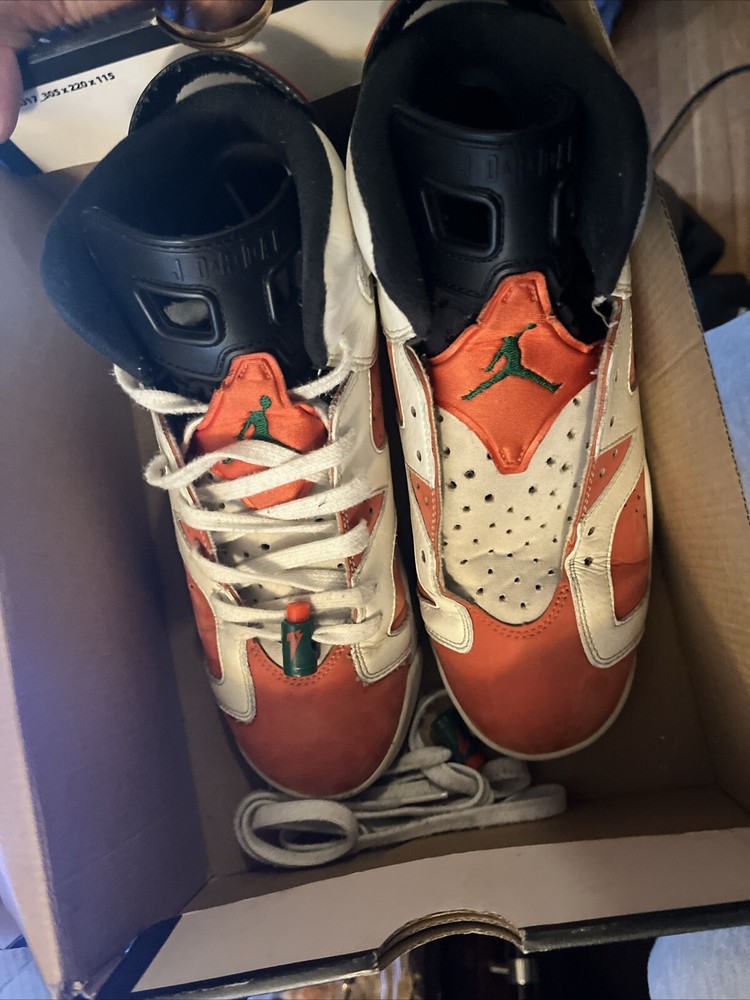 Air Jordan 6 Retro ‘Gatorade’ - Like Mike. SKU: 384664145 Size: 6.5y Notes: OG All Condition: 7/10 The "Jordan 6 Retro Mid Gatorade" in size 6.5 (GS) is a classic mid-top sneaker designed for boys and unisex kids. Part of the Air Jordan product line, these athletic shoes feature a white colorway with a retro theme inspired by the iconic Air Jordan 6 model. The inclusion of Gatorade branding adds a unique touch to the design, making these sneakers a stylish and functional choice for young sneaker enthusiasts.