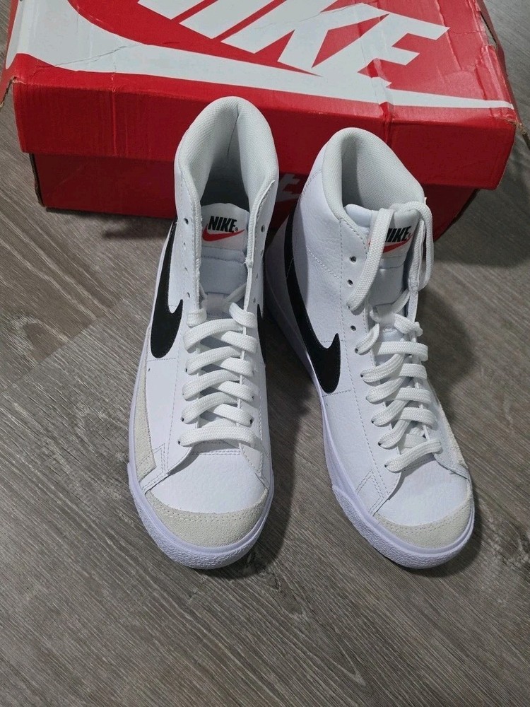 The Nike Blazer Mid 77 in white and red looks great, though the red leans maroon—a nice touch! Perfect for the gym, but shows some wear and dirt on the toe. Still in decent shape for a used pair, just needs a little cleaning. Solid deal for the price, especially if you love the retro style! 7/10 for condition, but still comfy and stylish.
