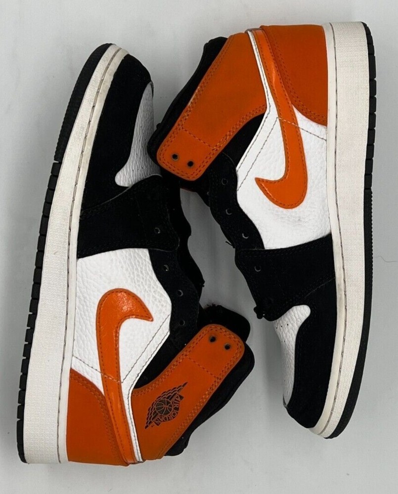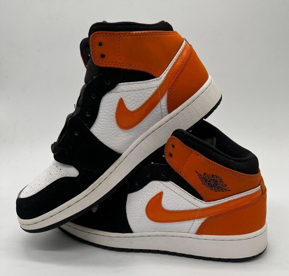 These Jordan 1 Mids are fire! The Shattered Backboard colorway pops, and even though they're pre-owned, they're in great condition. Fits true to size, super comfy, and the orange accents make them stand out. No box, but who cares when they look this good? Definitely worth it!