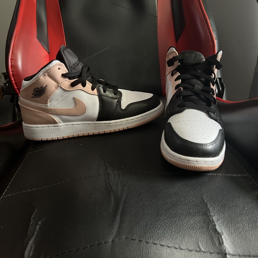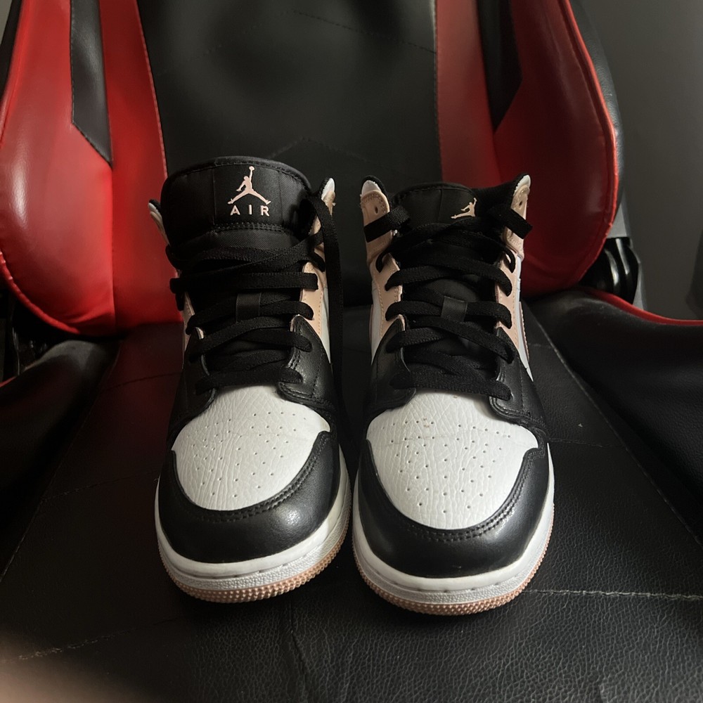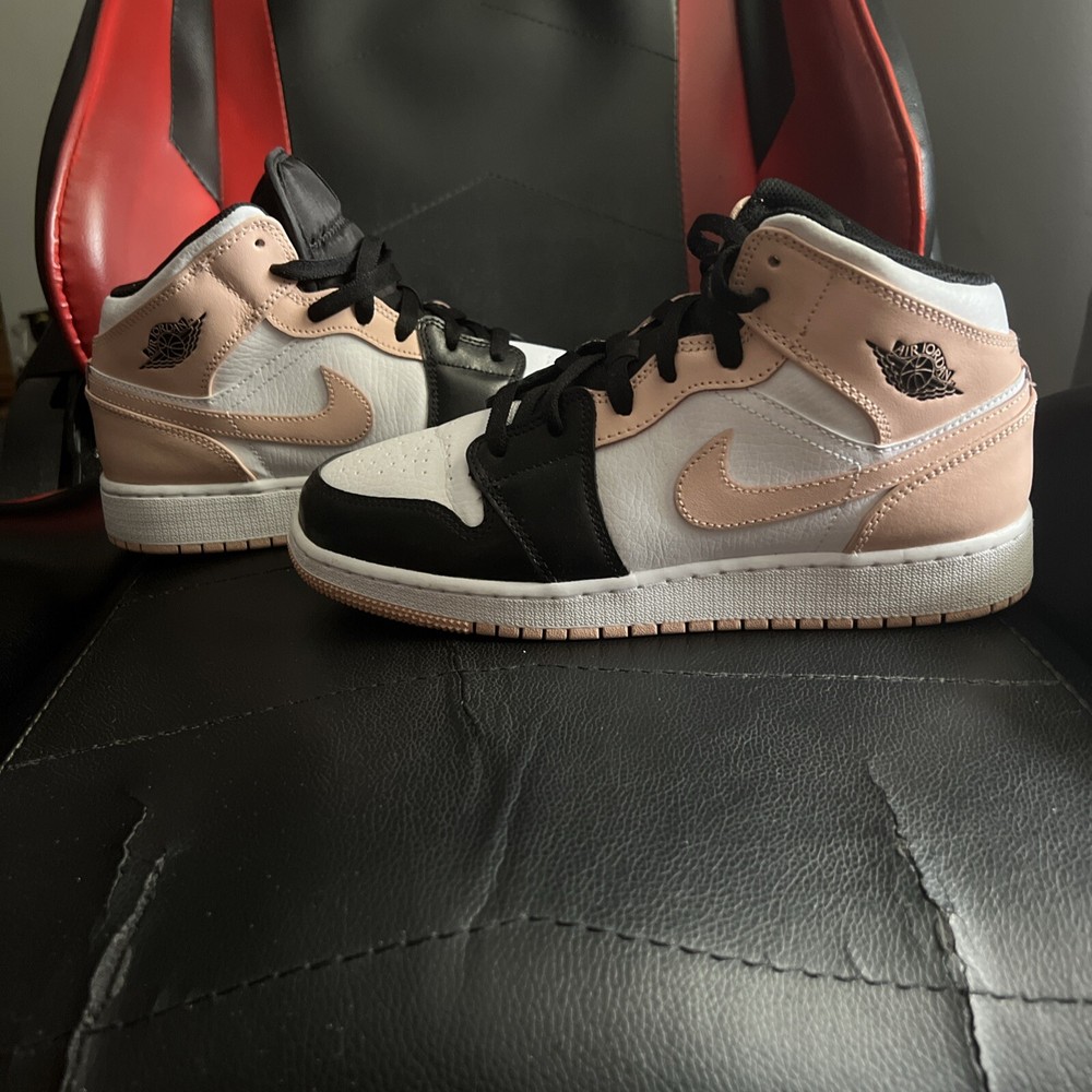 Introducing the Size 6.5Y Air Jordan 1 Mid Crimson Tint sneakers, perfect for any athletic occasion. These sneakers feature a mid-top shoe shaft style and a stylish white, black, and arctic orange color combination. The manufacturer, Jordan, has crafted these sneakers with high-quality leather upper material, ensuring durability These shoes are for kids so the size is 6.5 youth thank you for your understanding