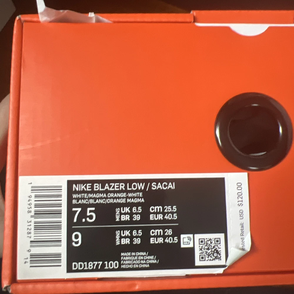Size 7.5 - Nike Blazer Low x Sacai Magma Orange...