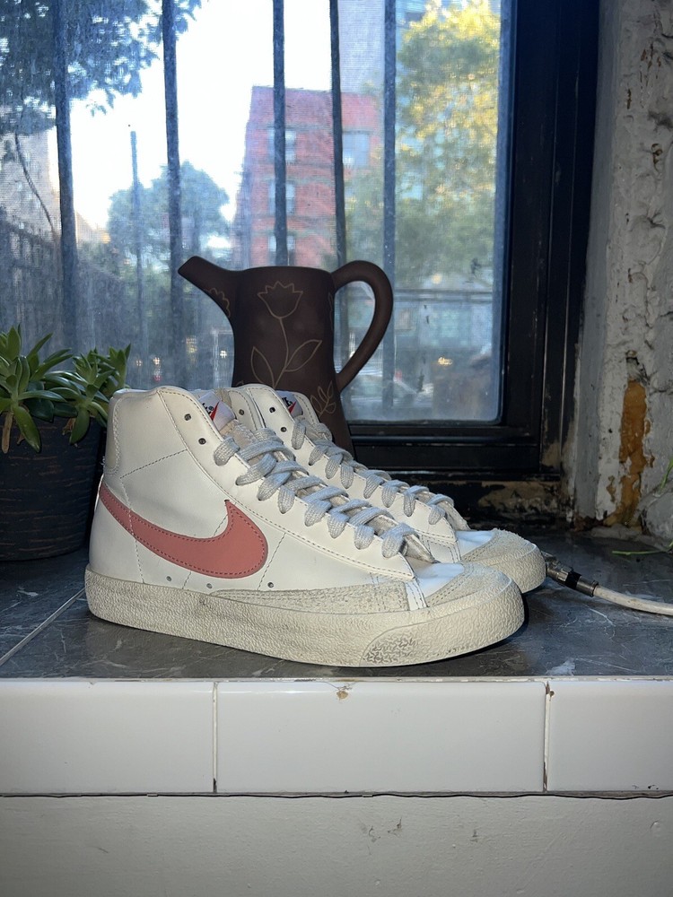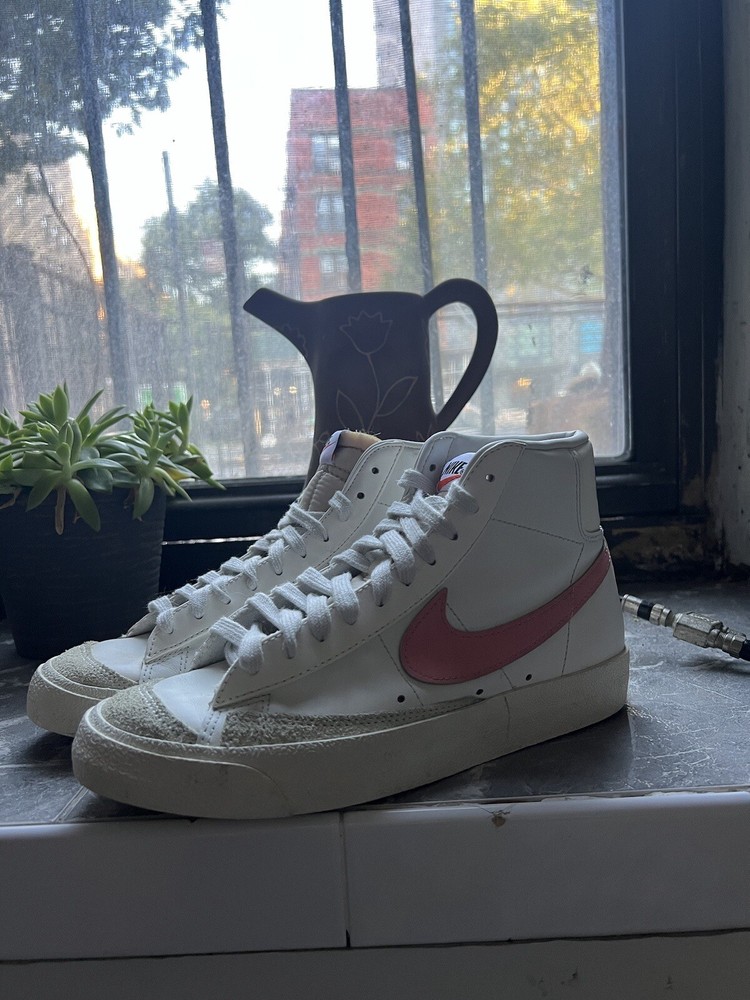 7.5 women’s Rarely worn but has a few dirt marks Can be cleaned with shoe cleaner very minor marks...