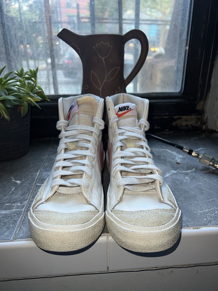 7.5 women’s Rarely worn but has a few dirt marks Can be cleaned with shoe cleaner very minor marks